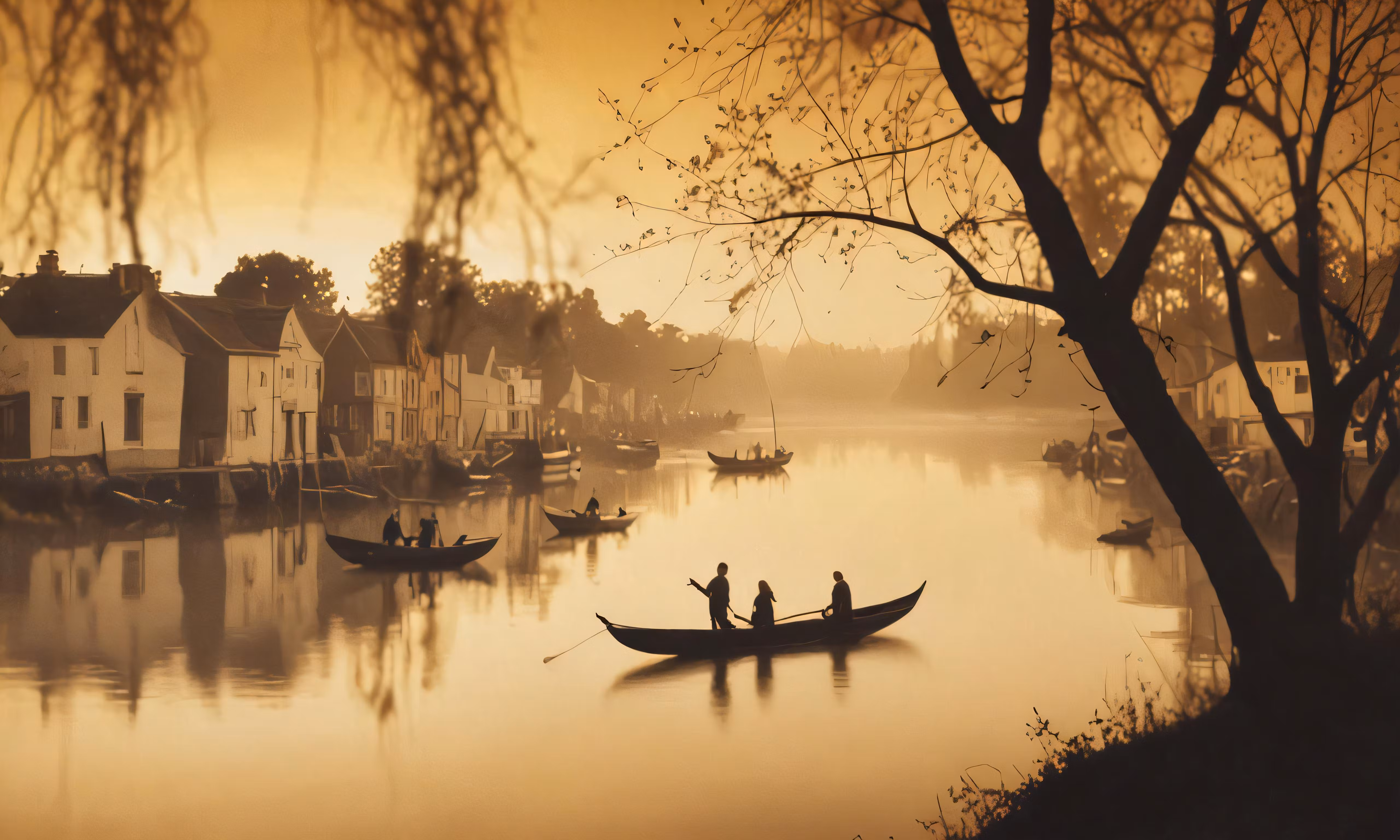 High resolution picture, free to use, there are two boats with people in it near houses
