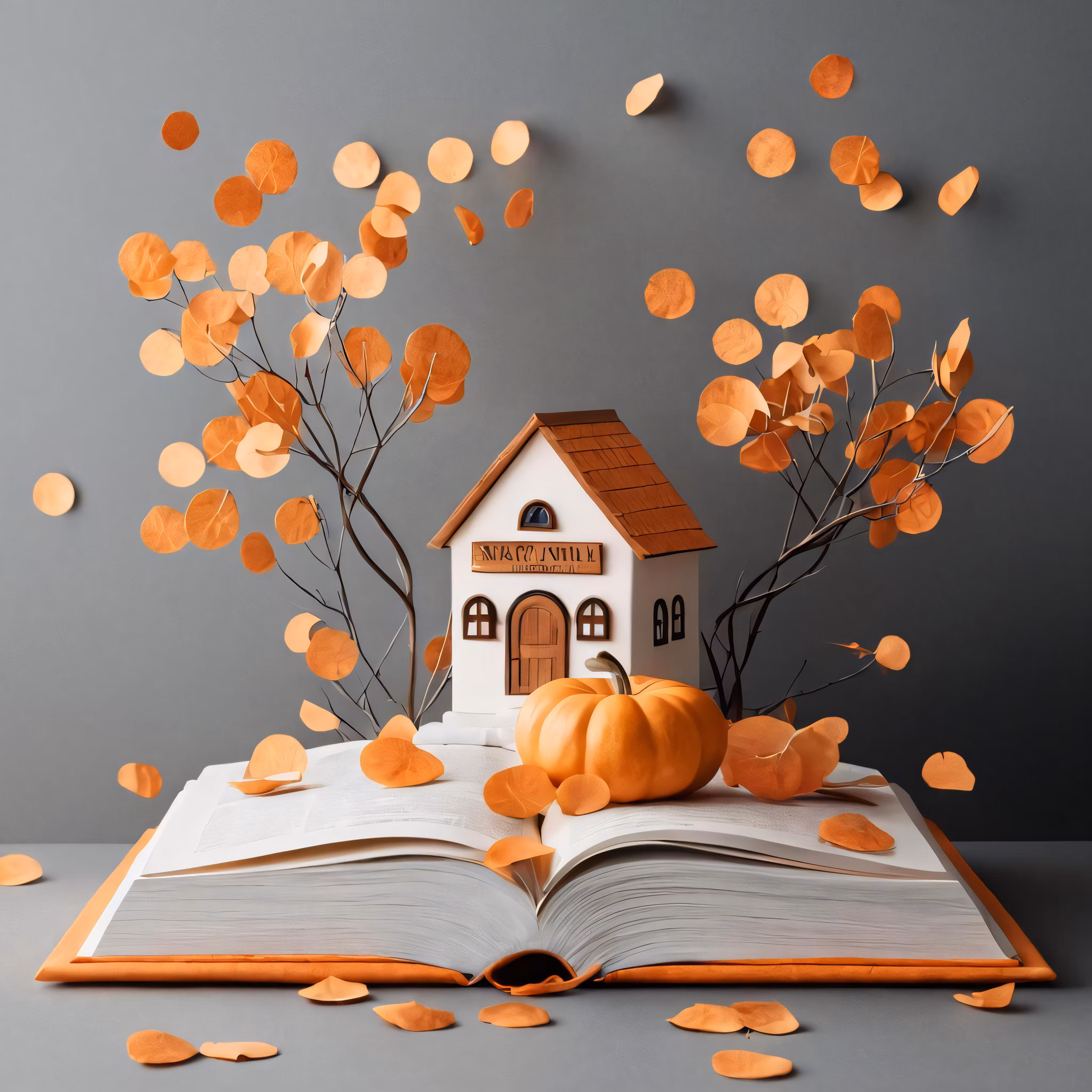 High resolution picture, free to use, there is a book and orange leaves in front of it