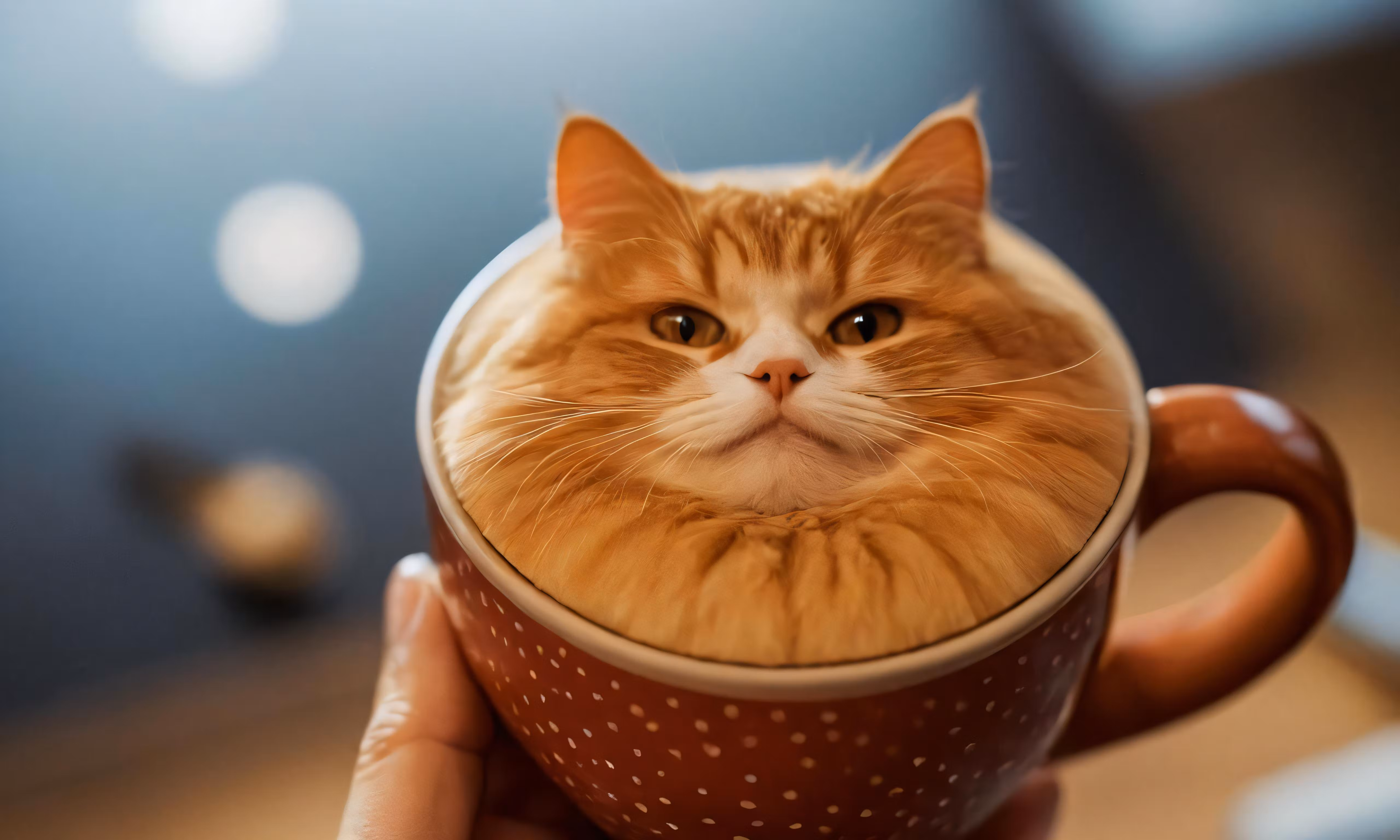 High resolution picture, free to use, there is a cup of coffee with a cat on it