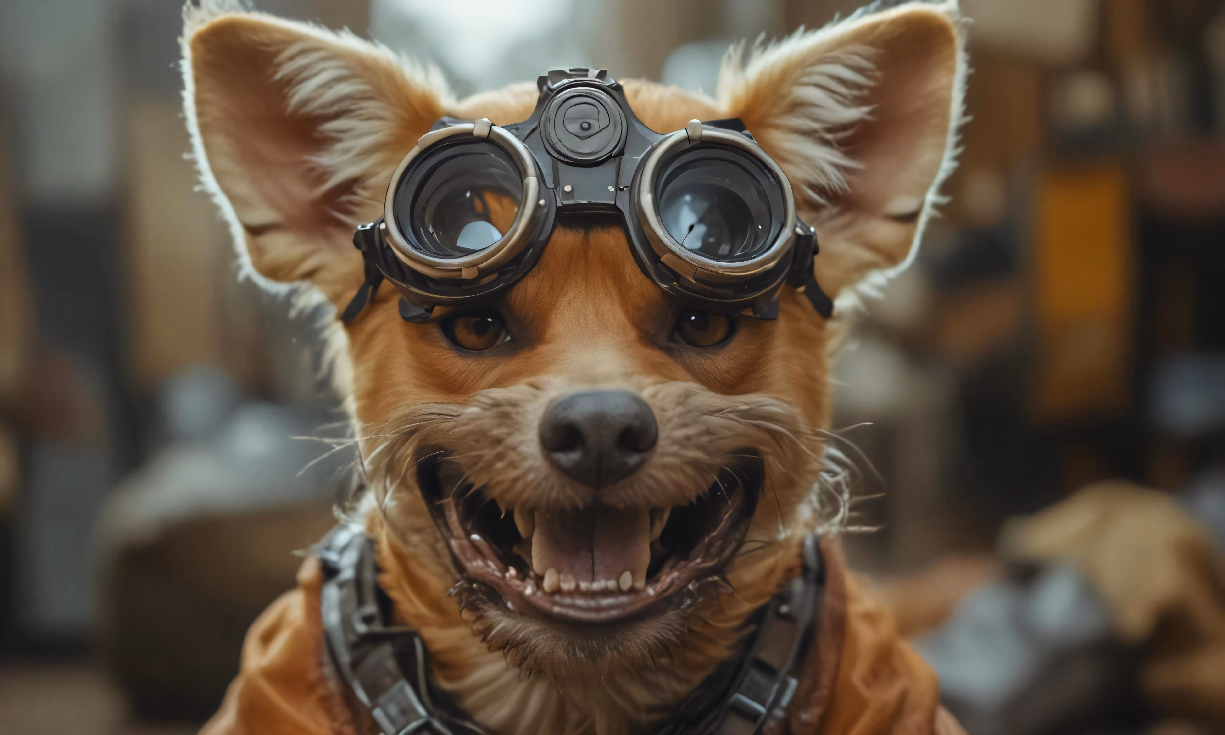 High resolution picture, free to use, there is a dog wearing a helmet and goggles
