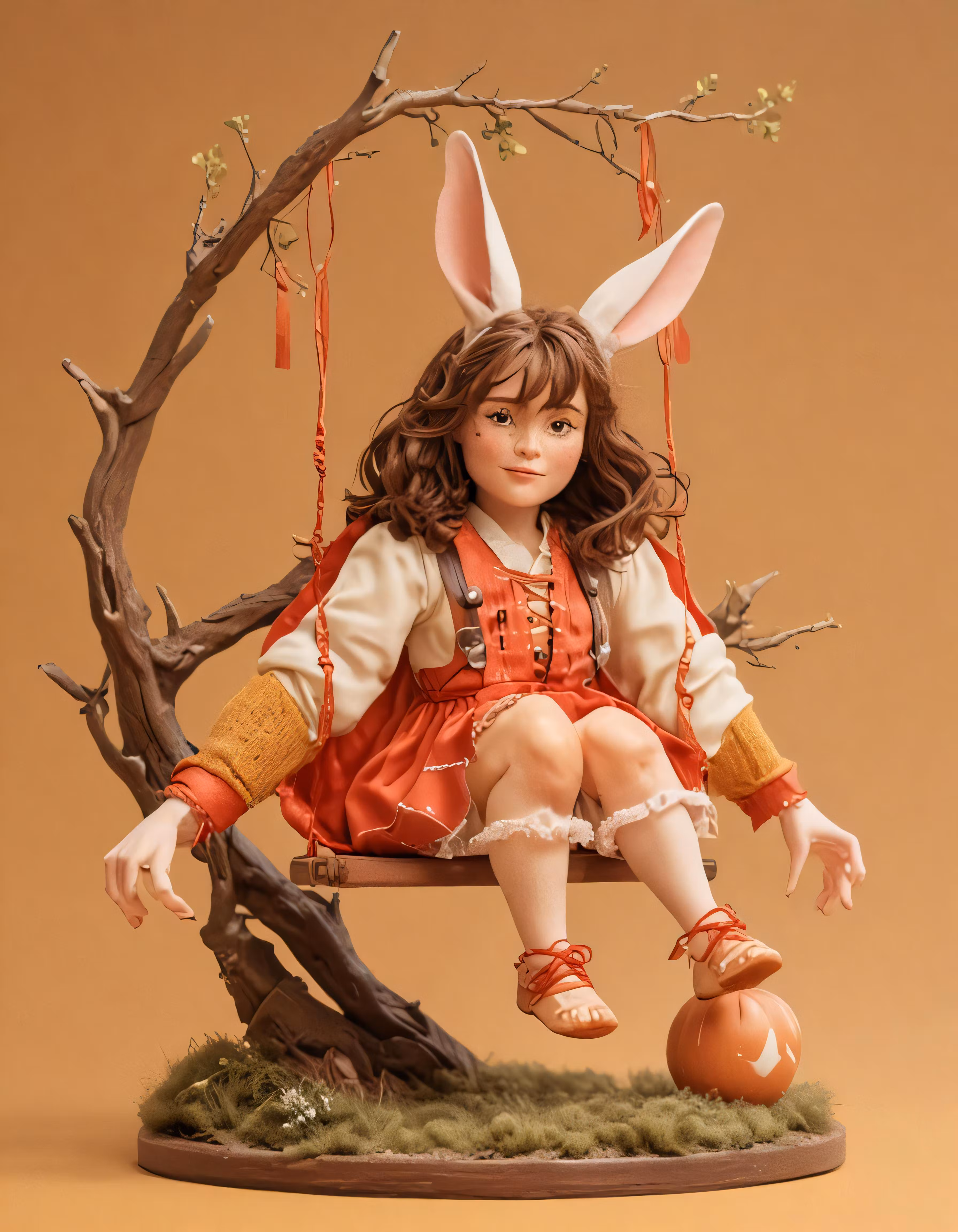 High resolution picture, free to use, there is a doll on a chair next to a tree