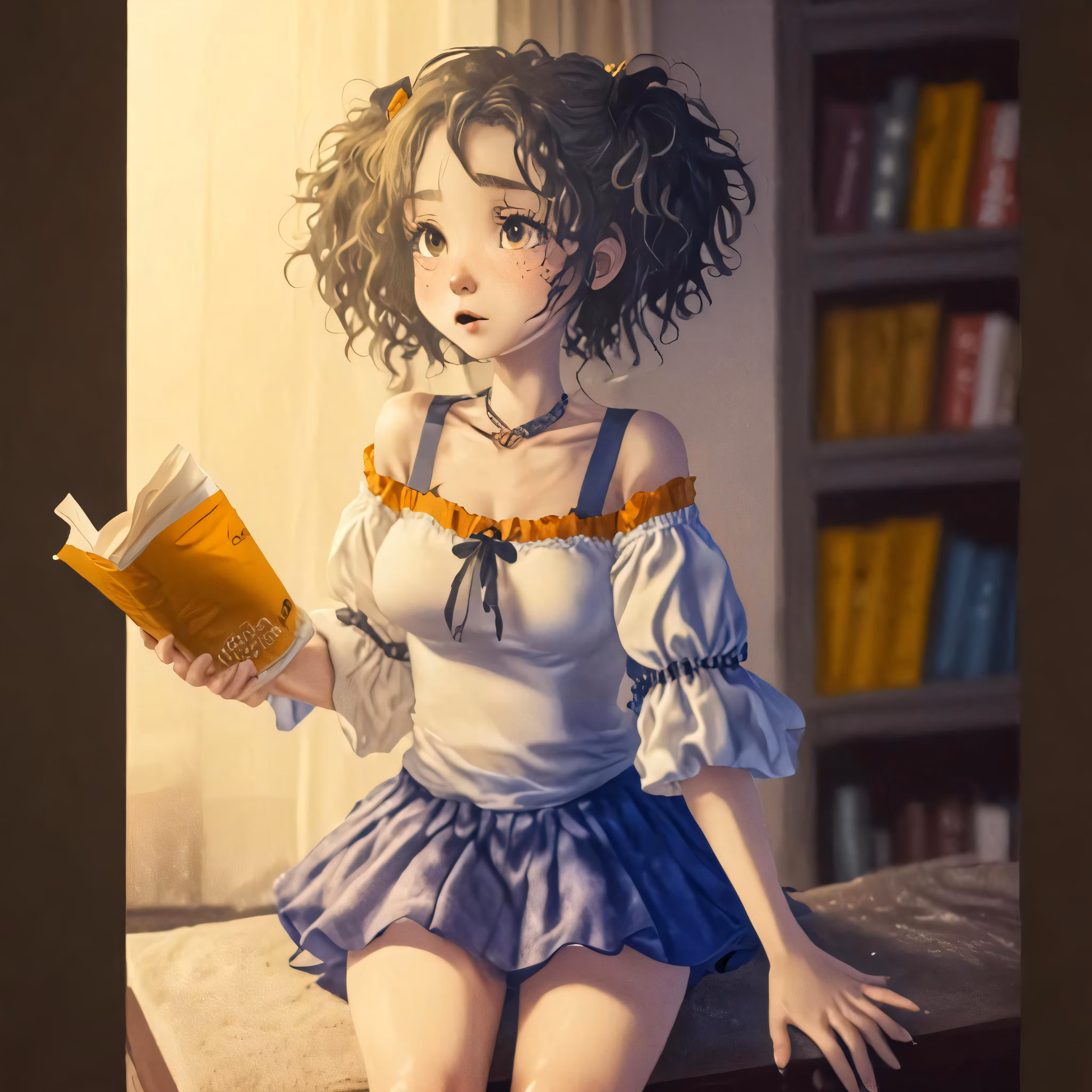 High resolution picture, free to use, there is a girl that is sitting with books in her hands