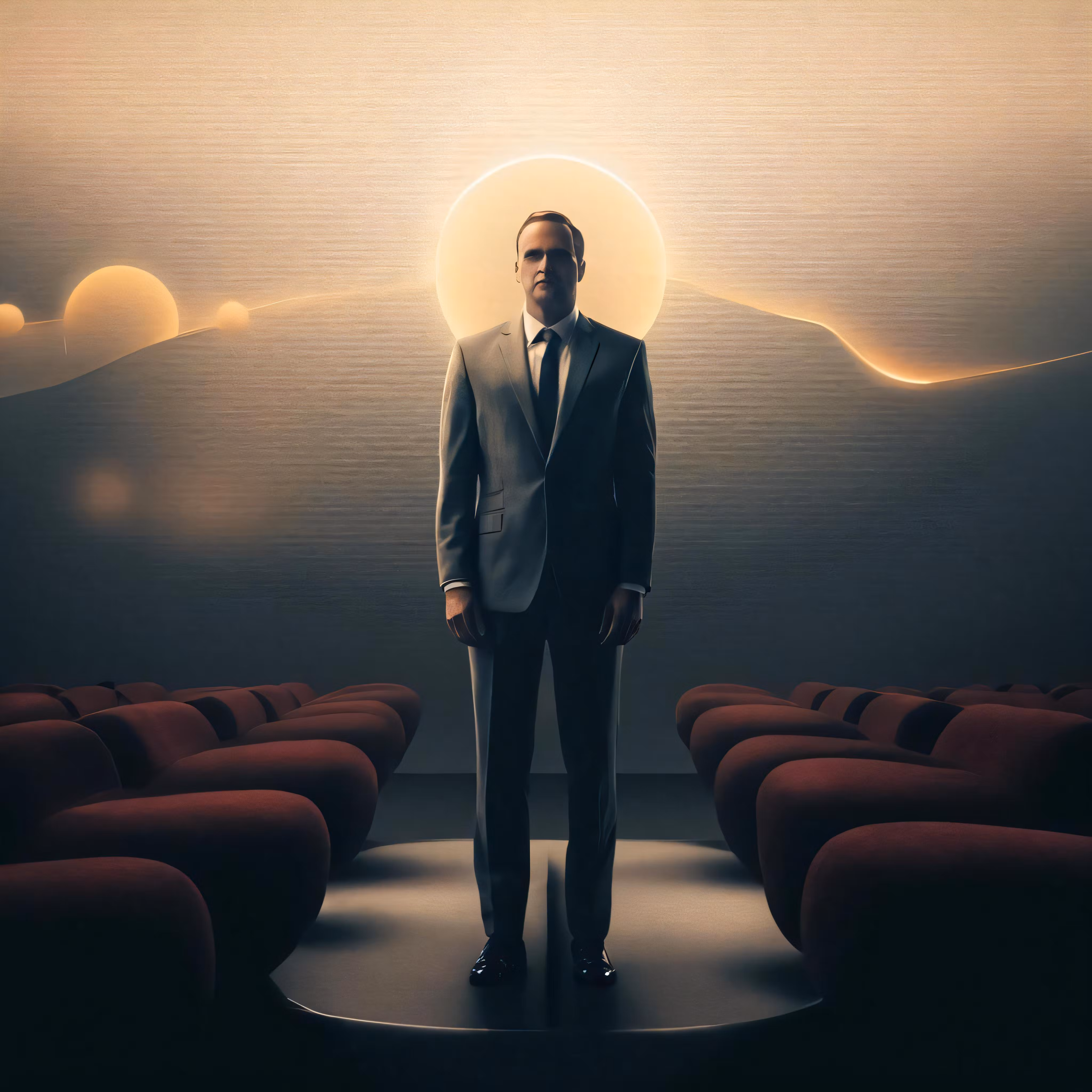 High resolution picture, free to use, there is a man standing in front of an empty stage