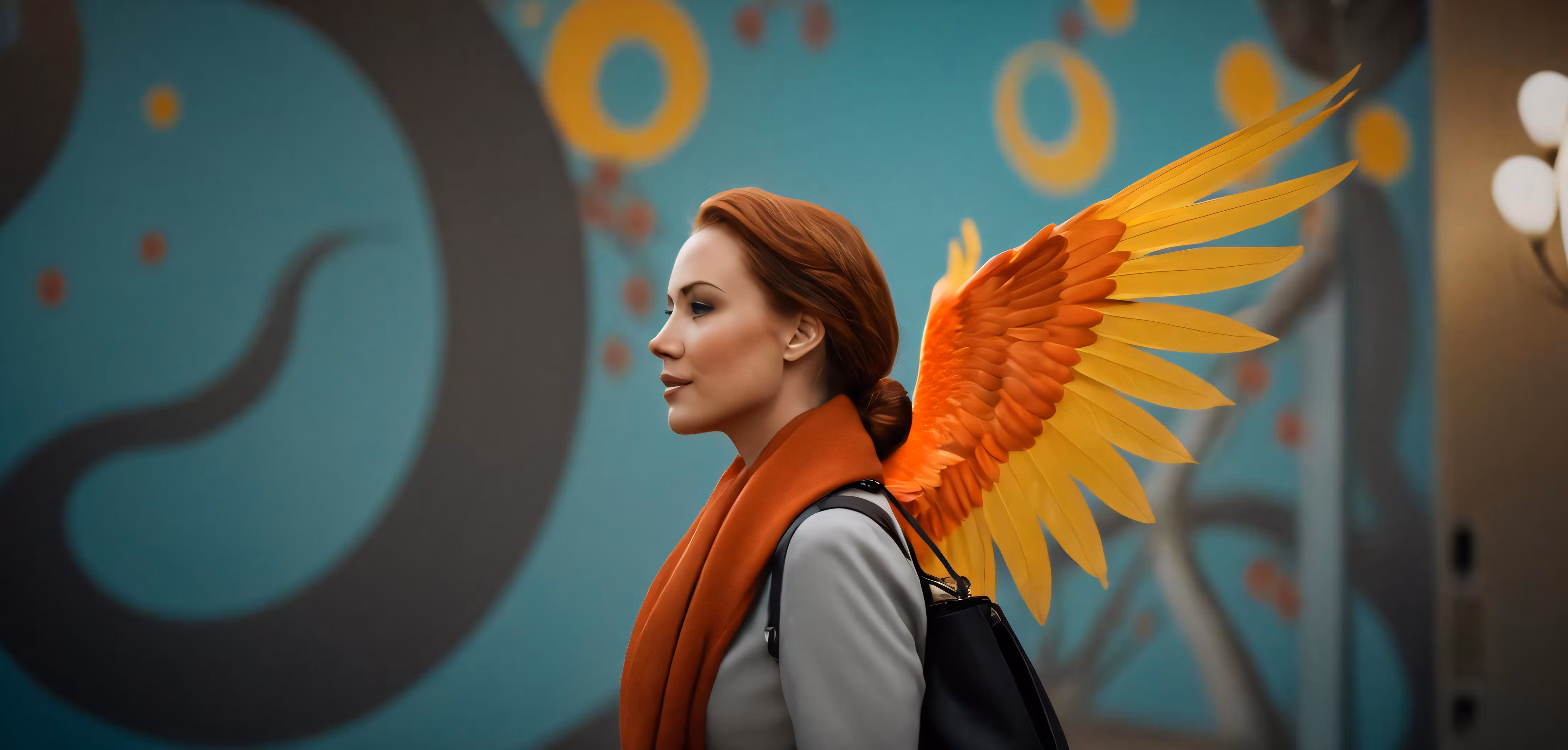 High resolution picture, free to use, there is a model in front of a colorful wall