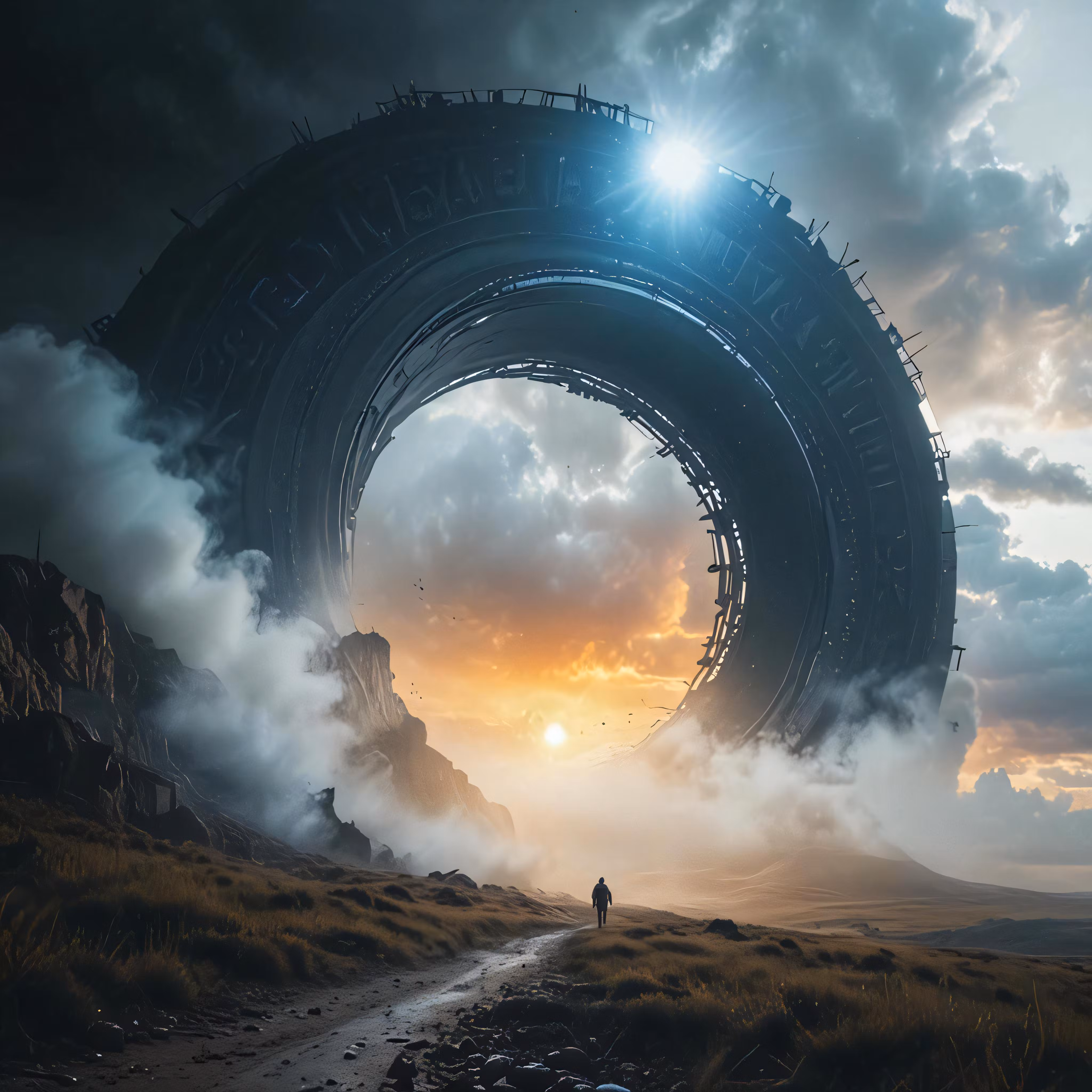 High resolution picture, free to use, there is a person standing near a huge tunnel