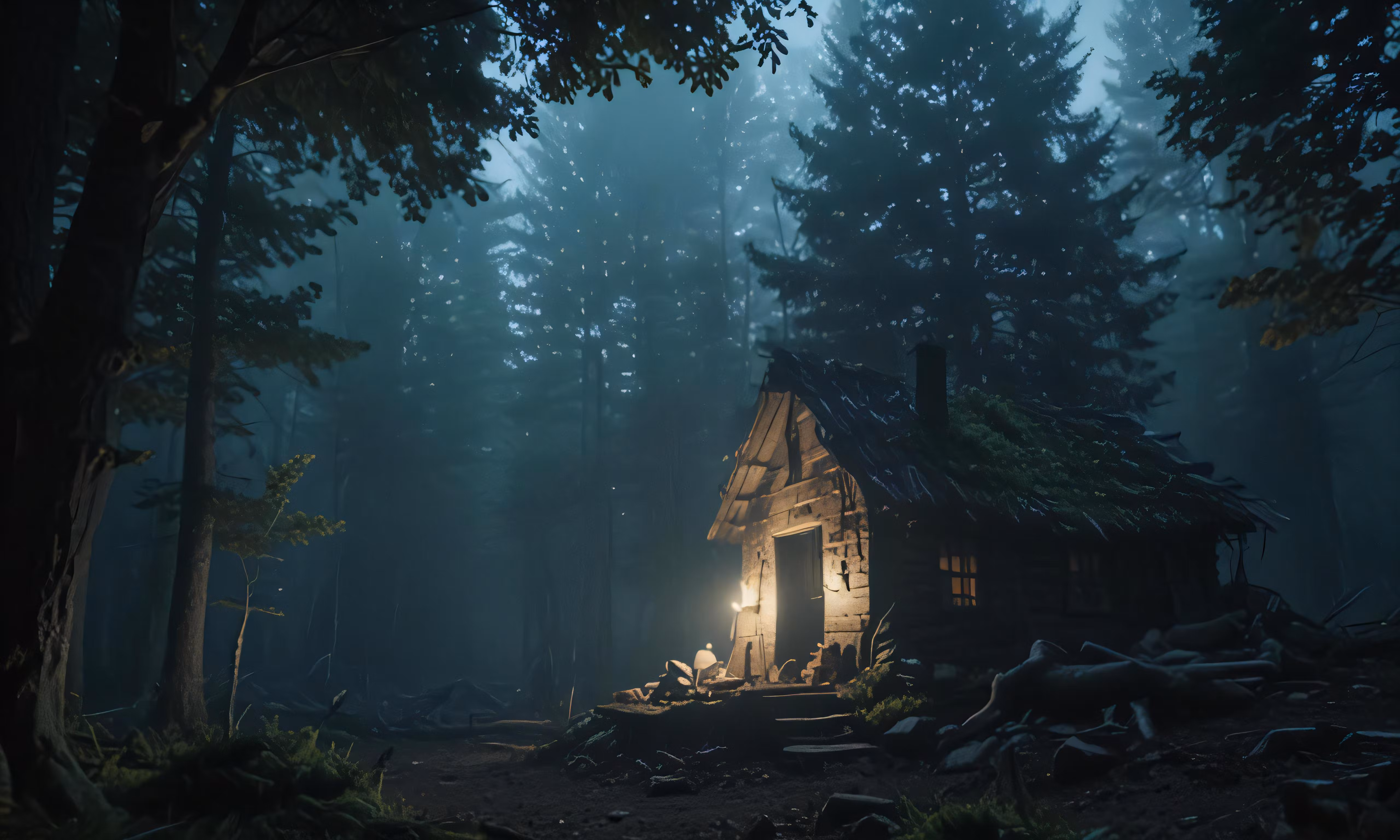 High resolution picture, free to use, there is a small cabin in the middle of a forest