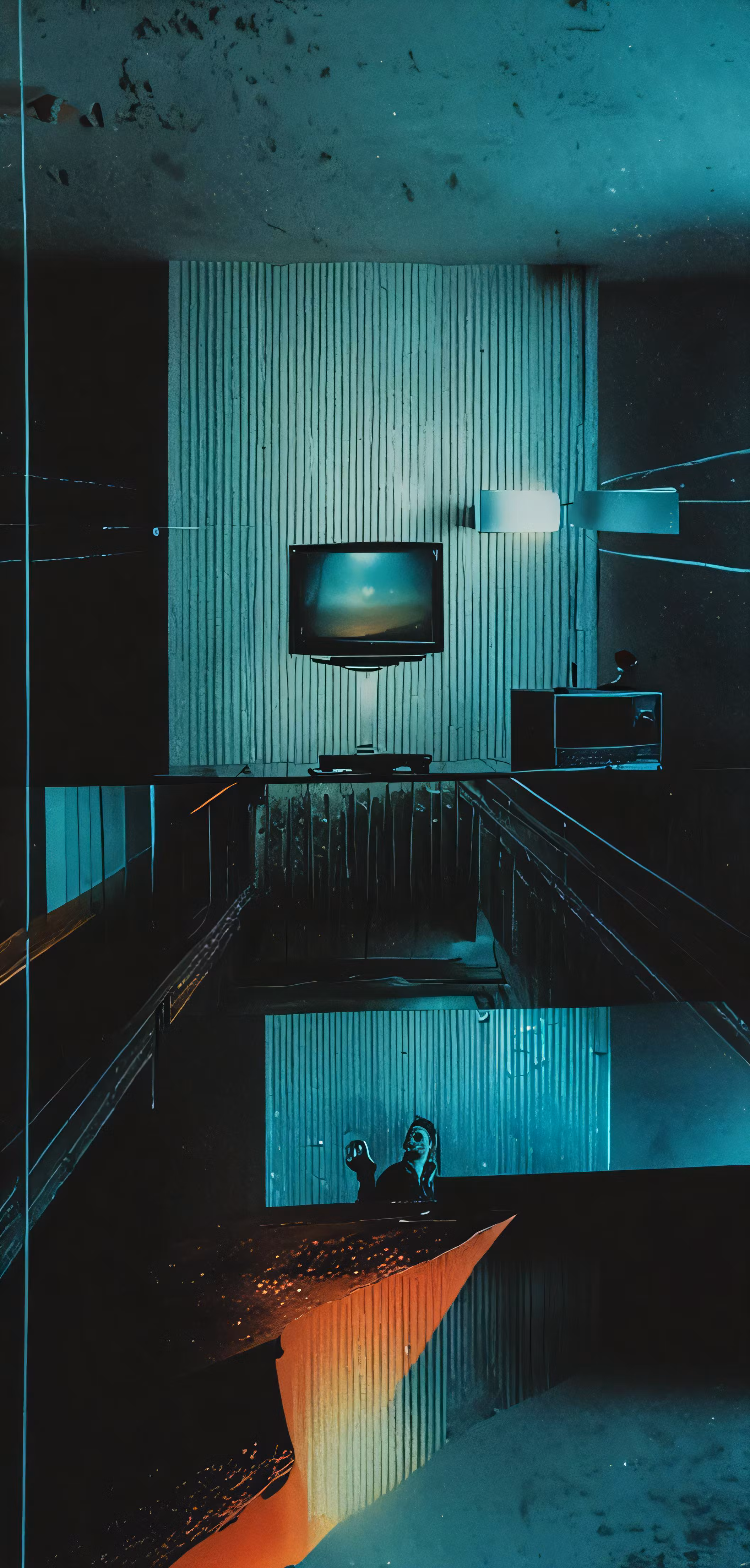 High resolution picture, free to use, there is a tv on the wall behind a mirror