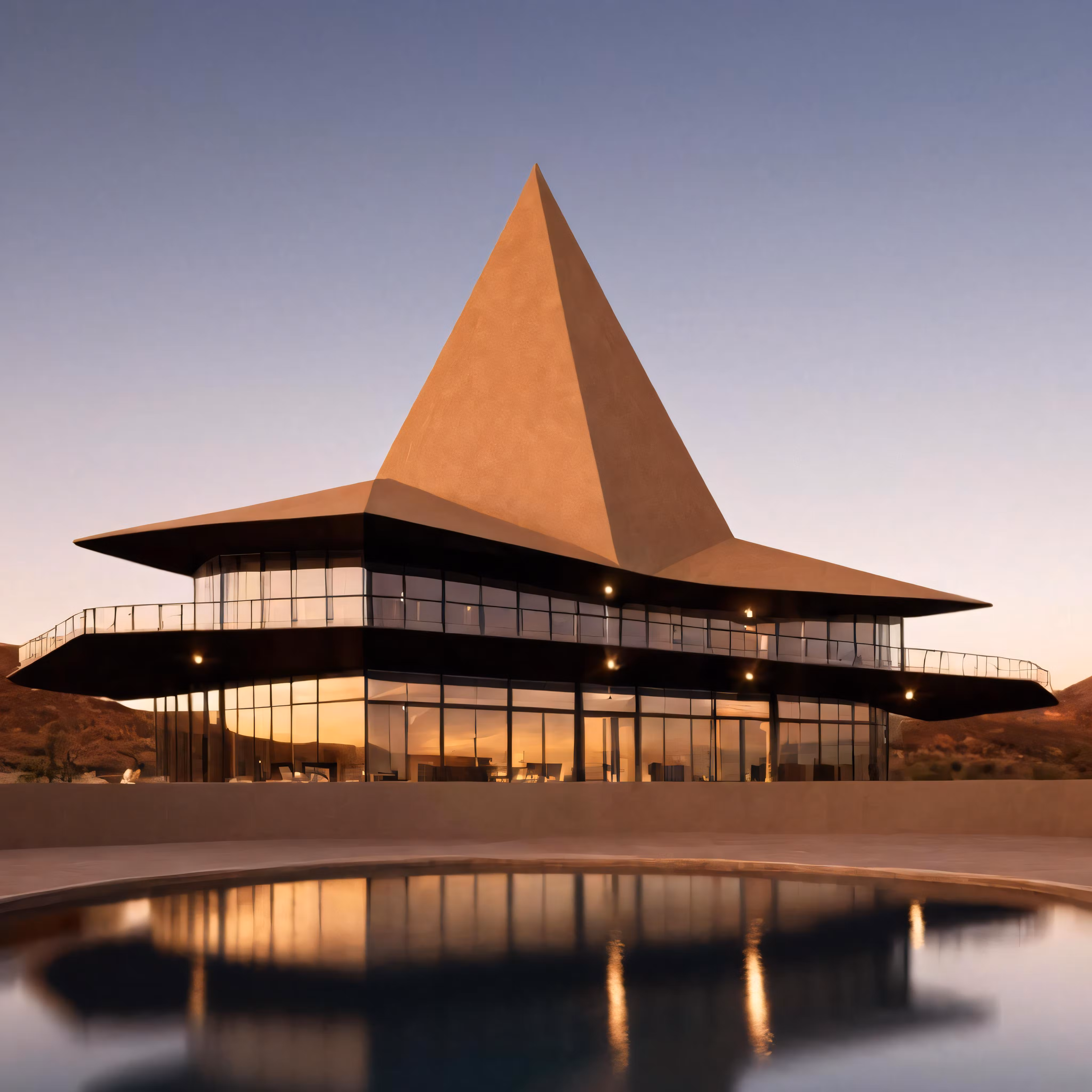 High resolution picture, free to use, there is a very large building with a pyramid shaped structure