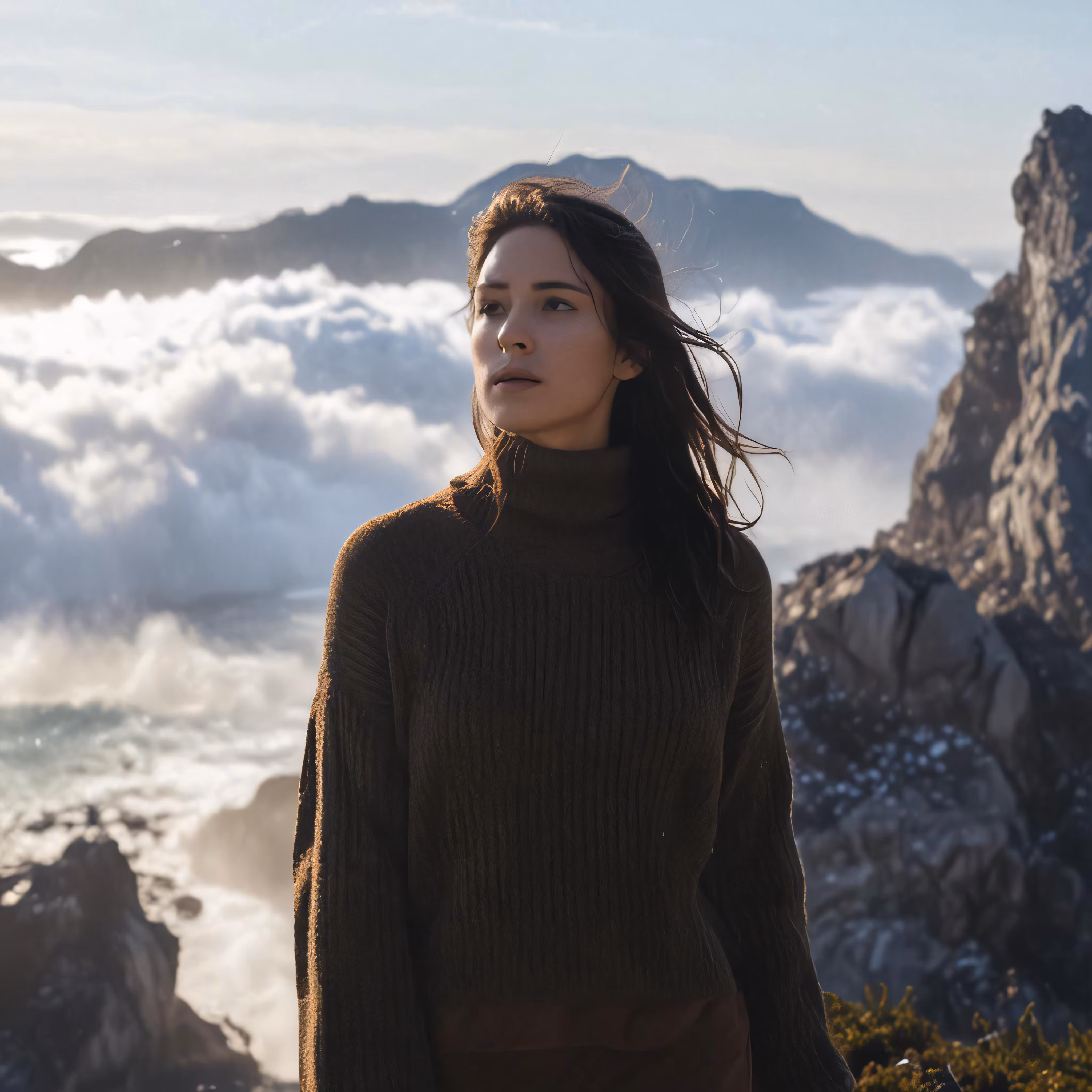 High resolution picture, free to use, there is a woman that is standing on a mountain