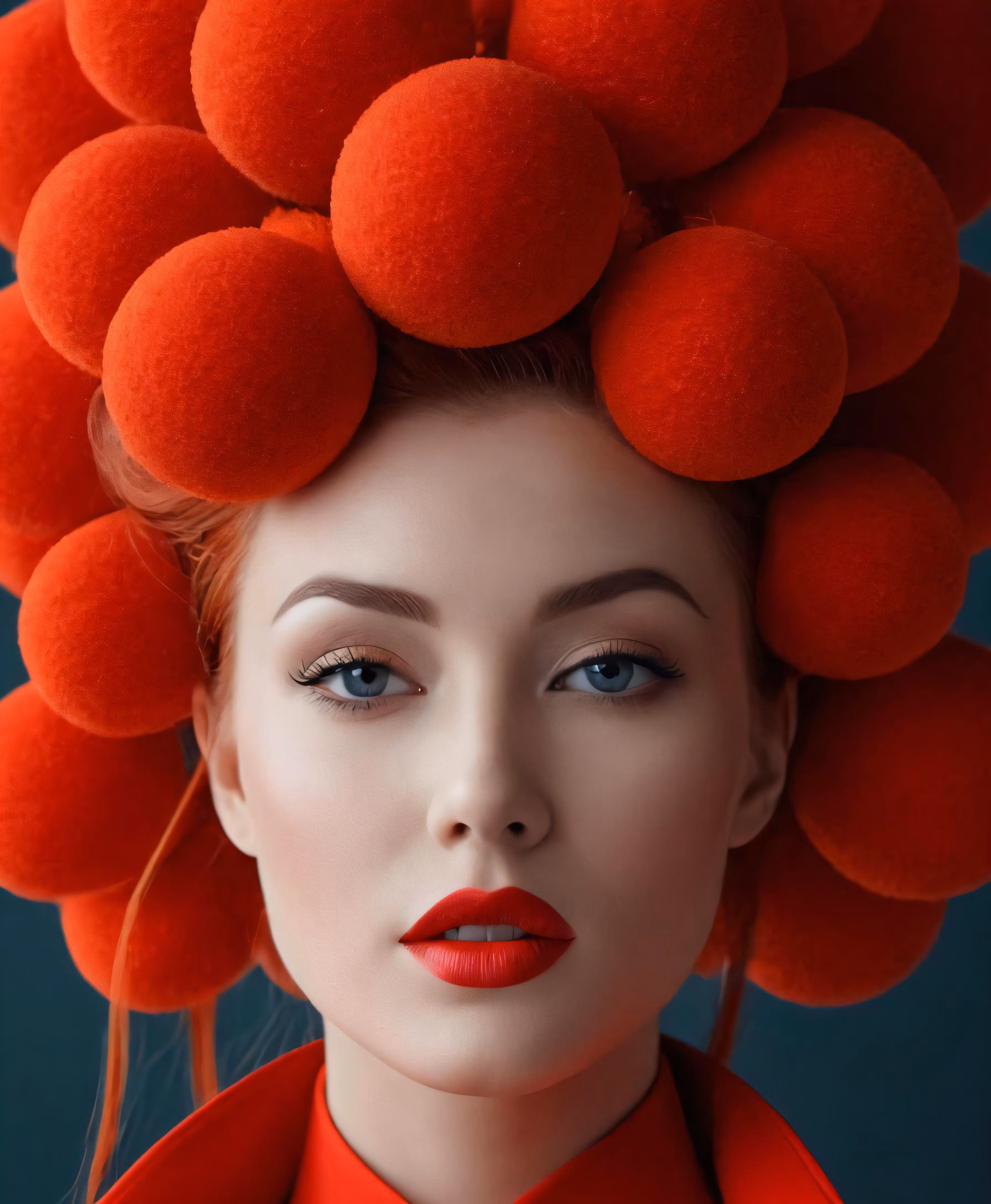 High resolution picture, free to use, there is a woman with a bunch of balls on her head