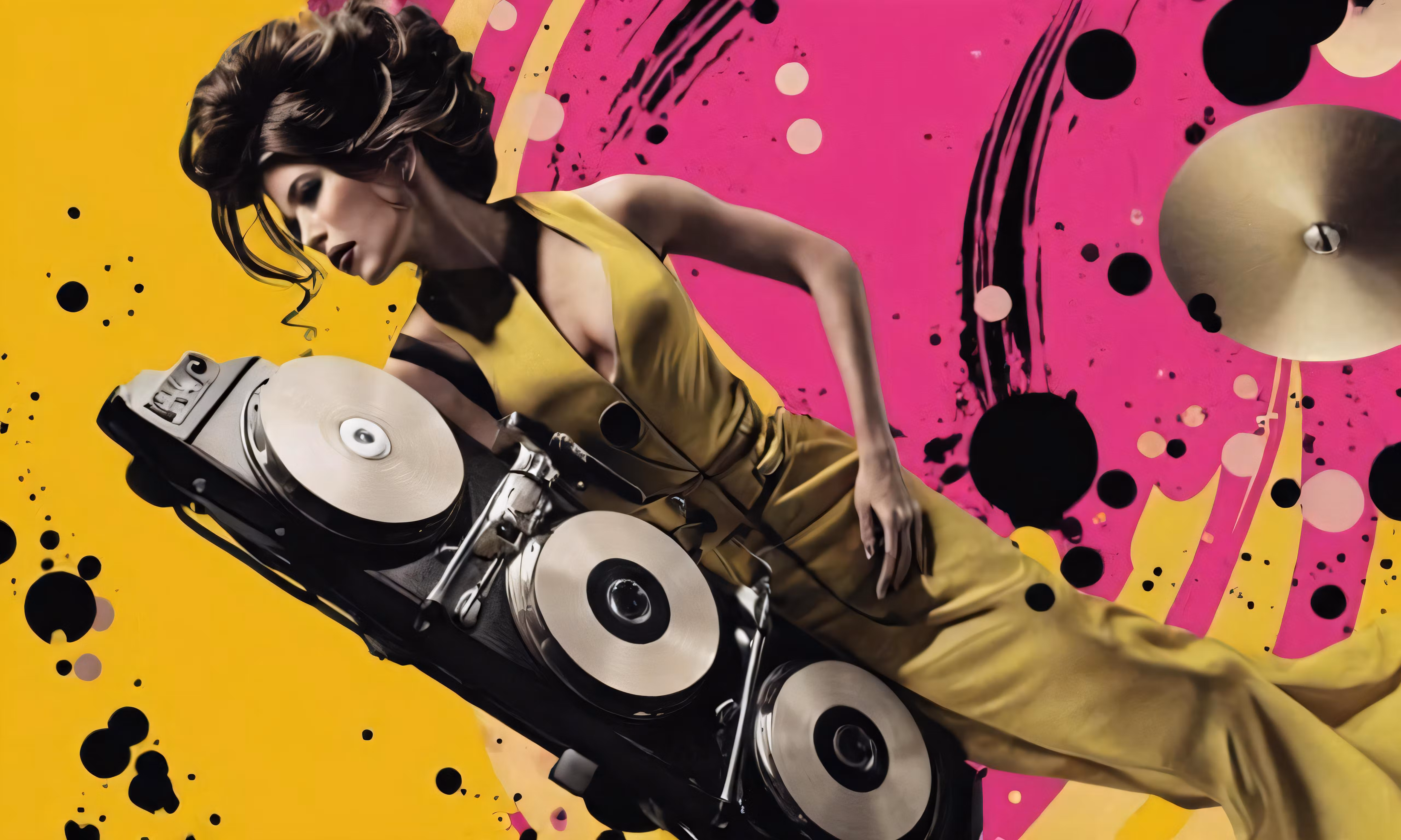 High resolution picture, free to use, there is a woman with musical equipment on top of it
