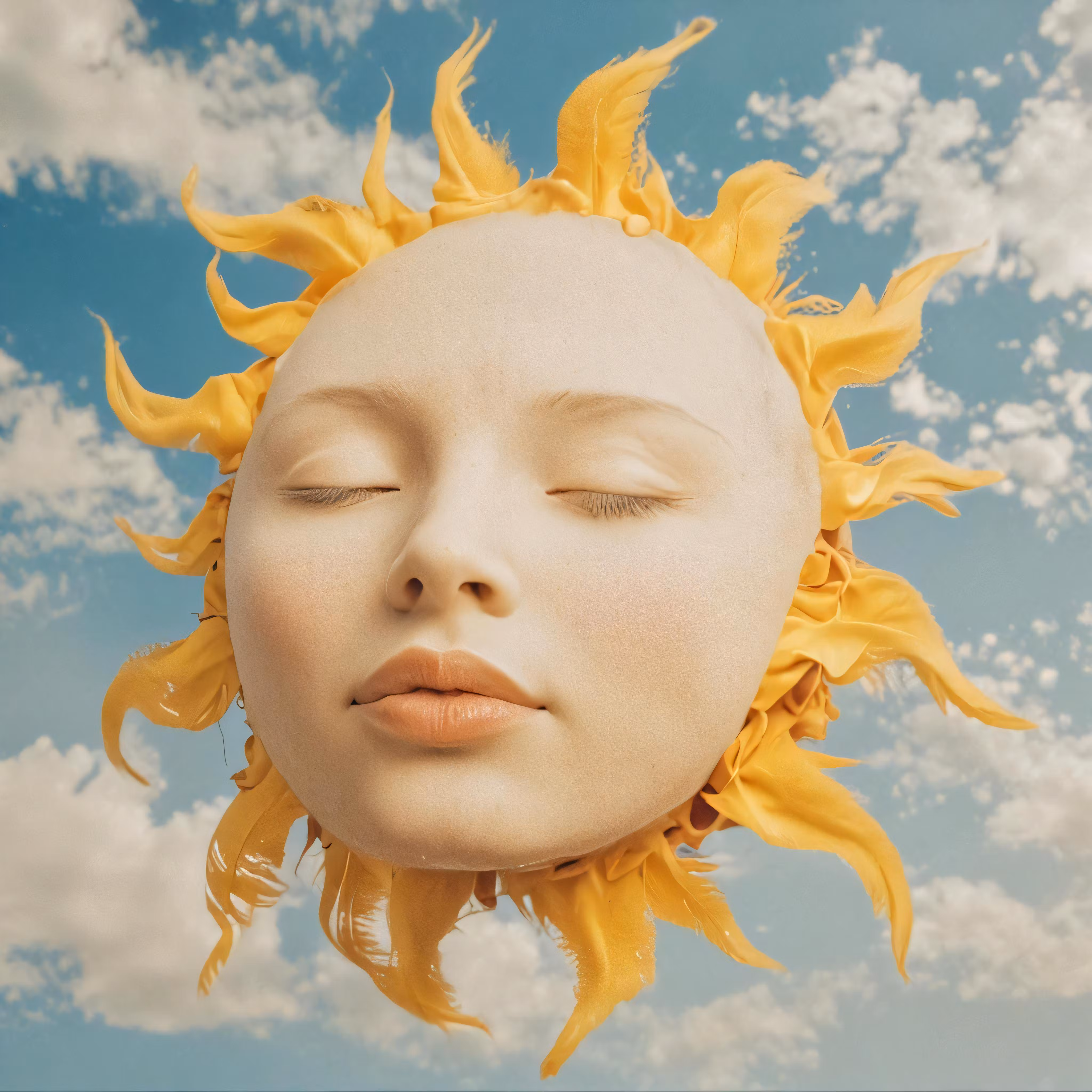 High resolution picture, free to use, there is an image of a sun that has been combined with the face of a woman