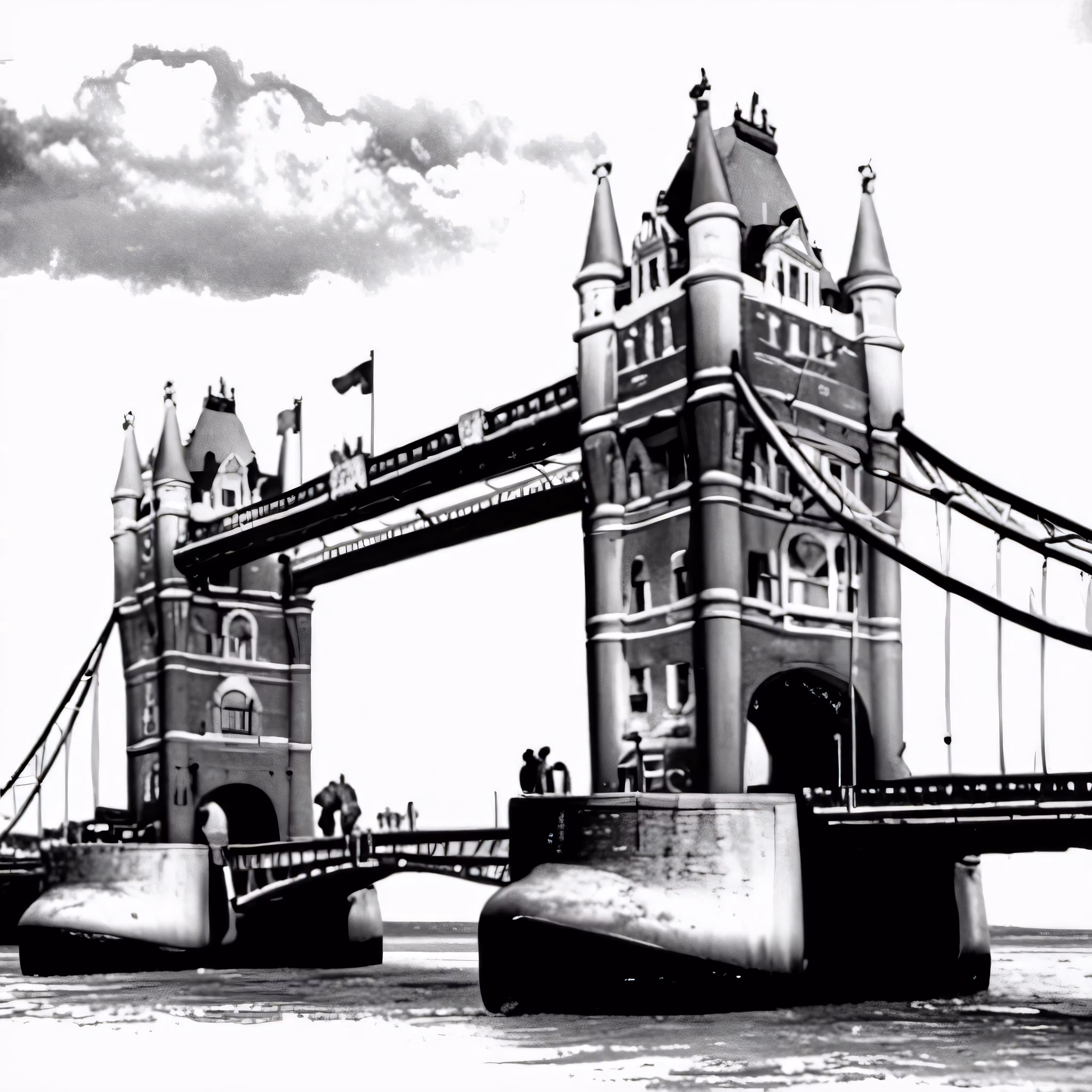 High resolution picture, free to use, this black and white photo is of a suspension bridge