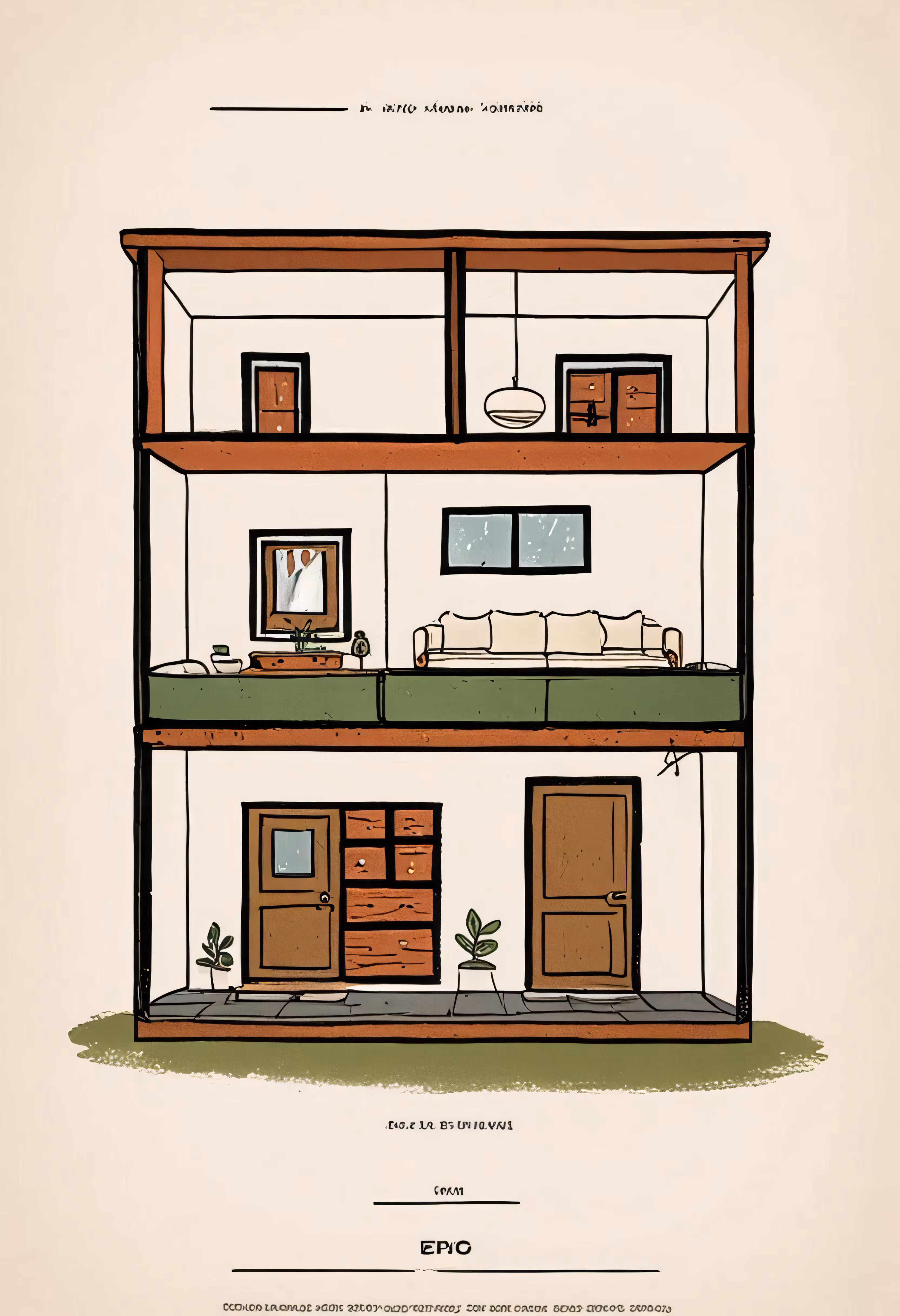 High resolution picture, free to use, this house has multiple levels, each with windows and cupboards
