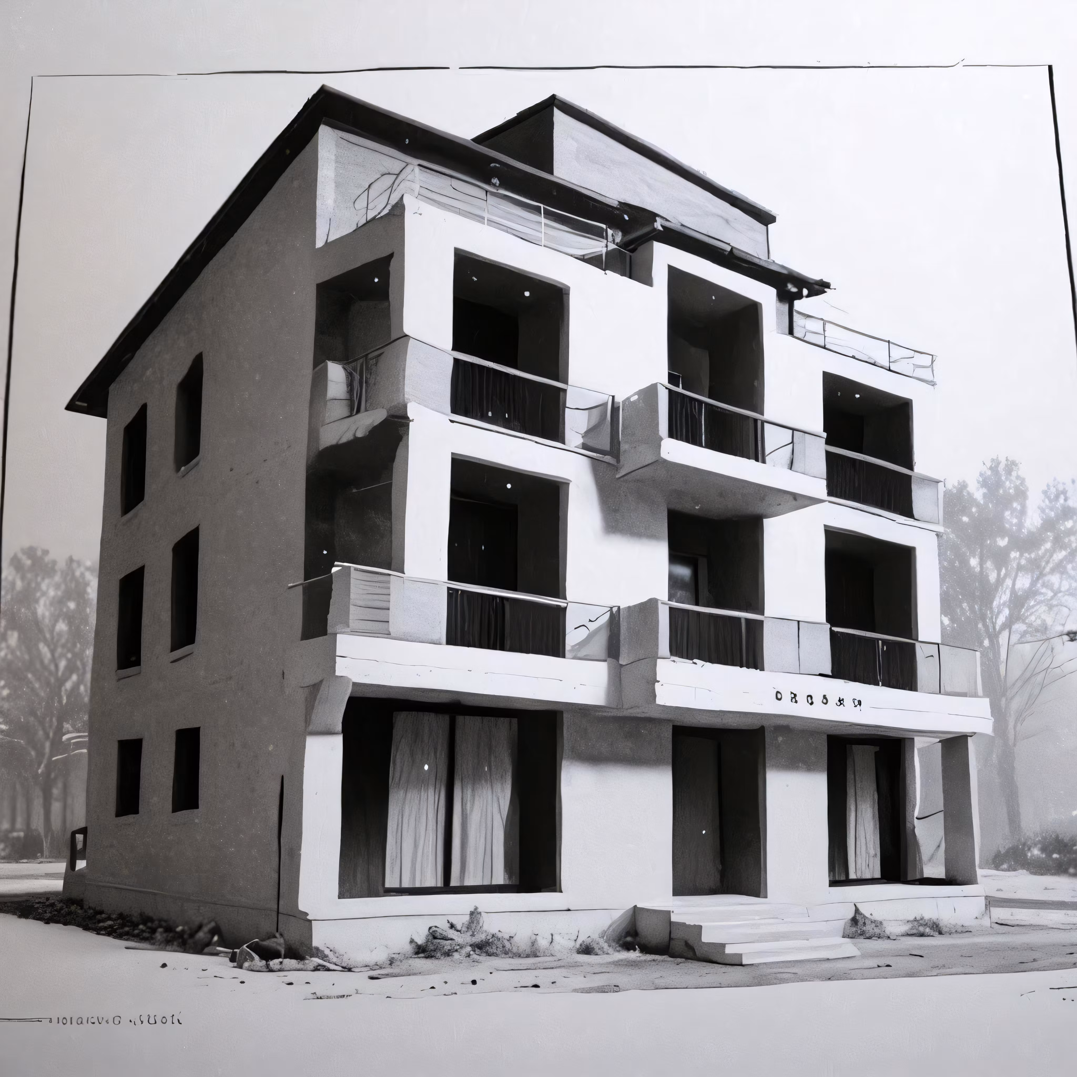 High resolution picture, free to use, this is a building on a foggy day with one level
