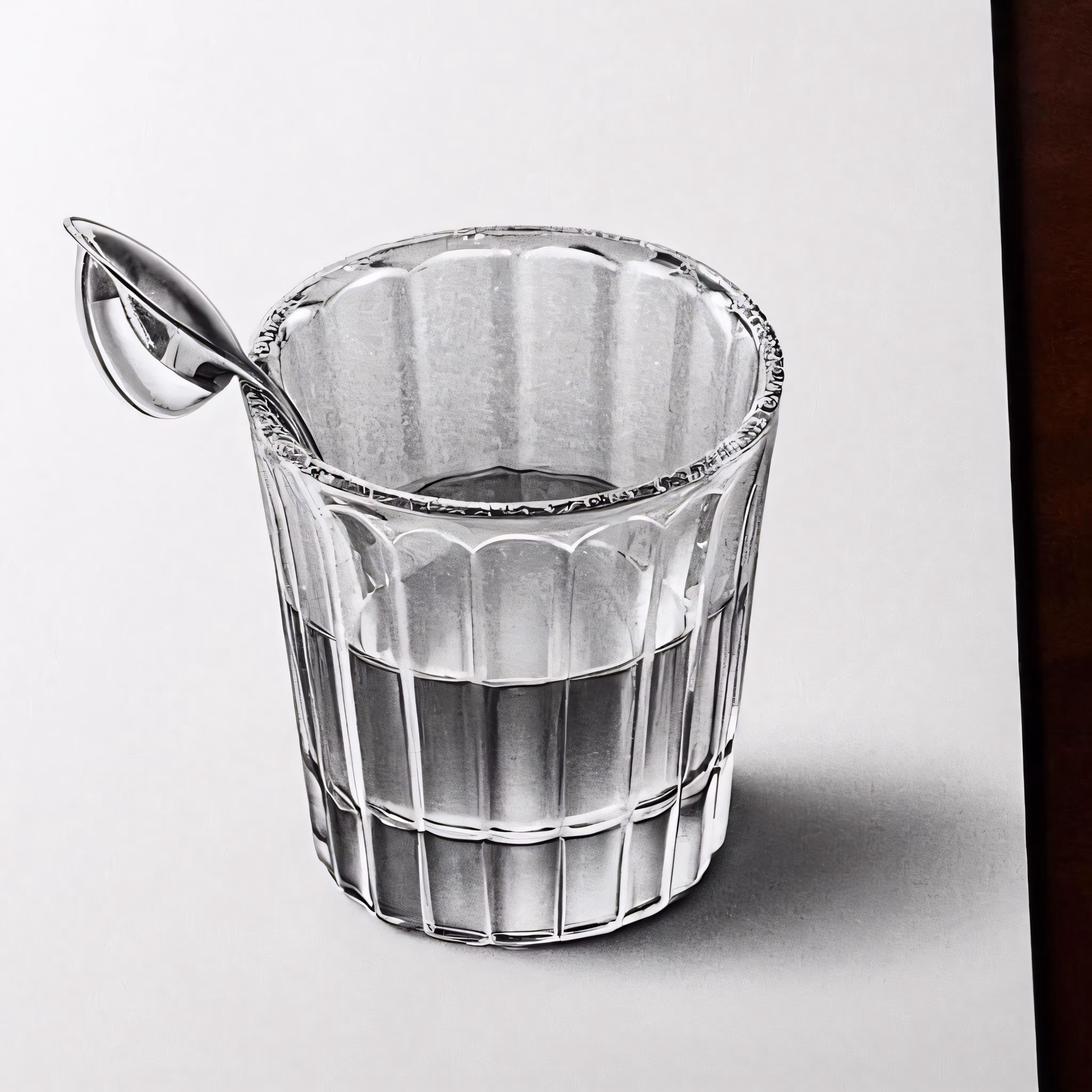 High resolution picture, free to use, this is a drawing of a glass and a spoon