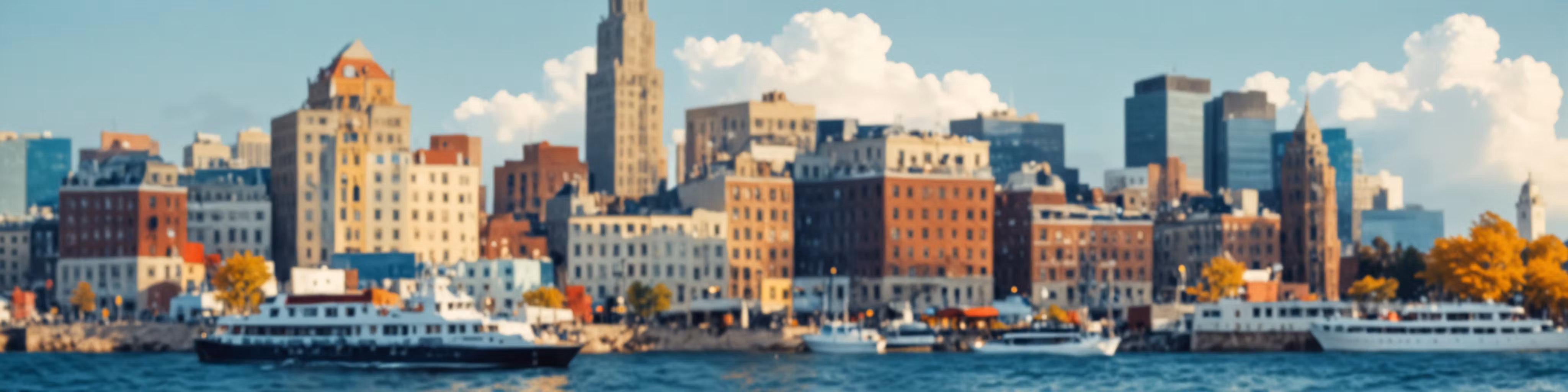 High resolution picture, free to use, this is a large city skyline with several boats in it