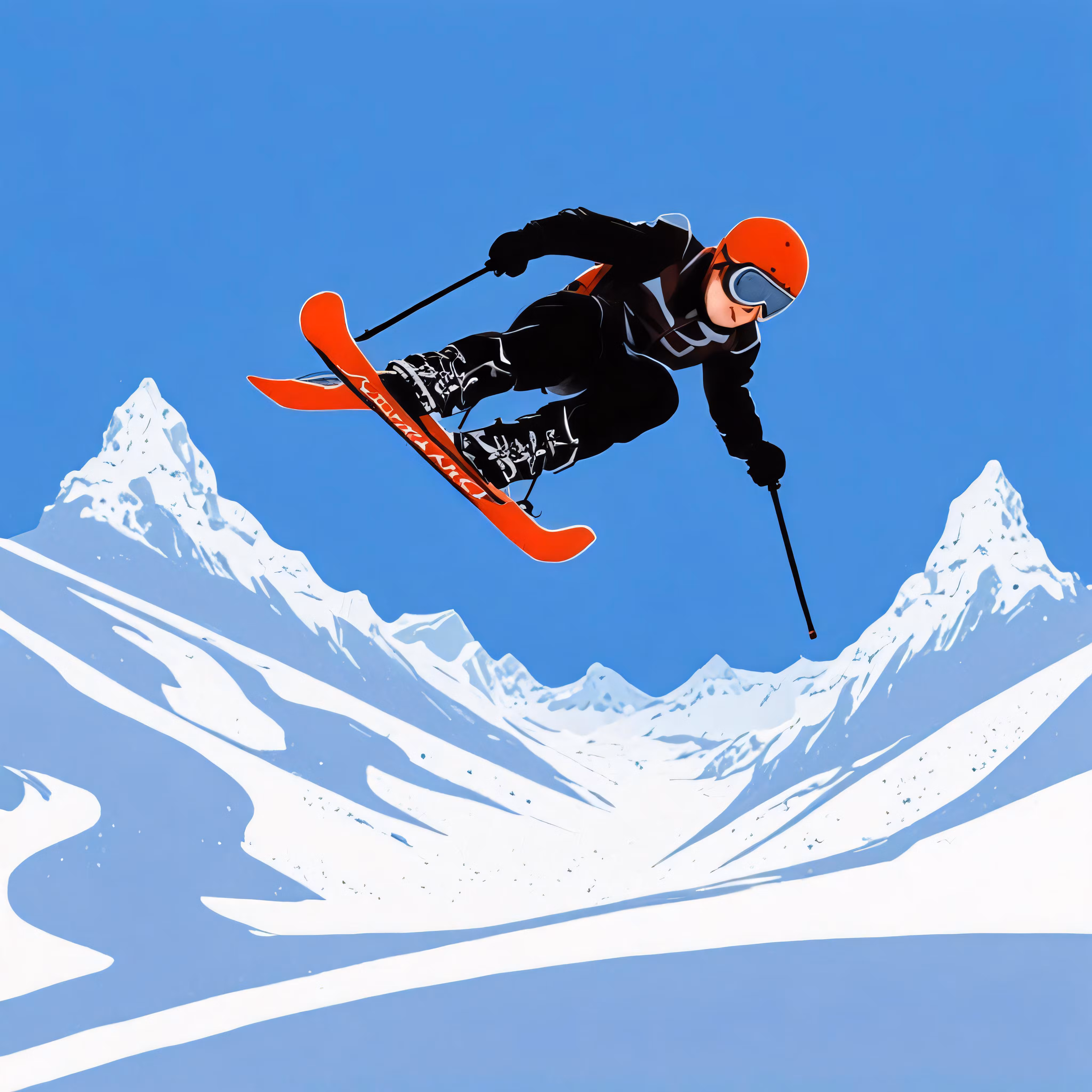 High resolution picture, free to use, this is an image of a man on skis jumping over the mountain