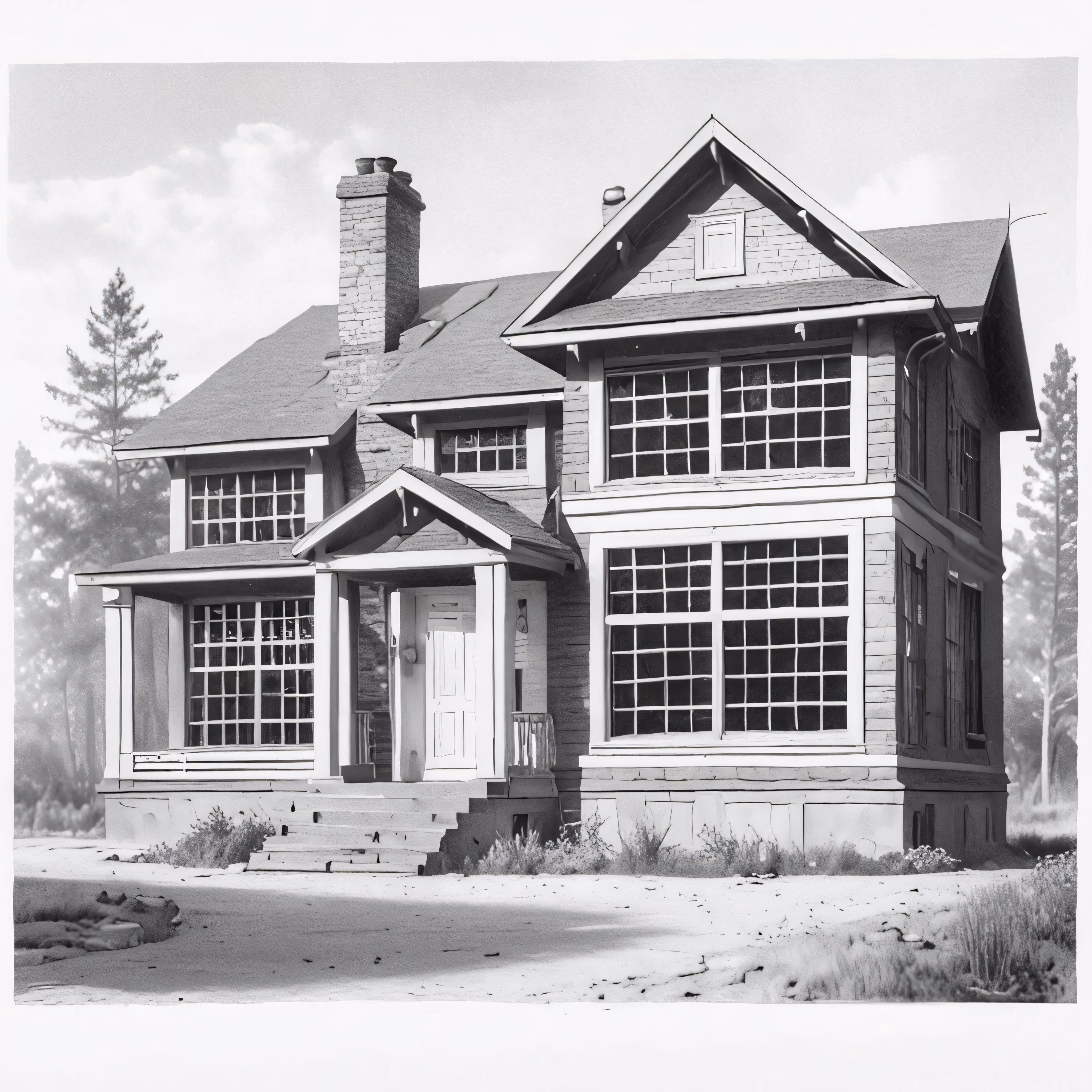 High resolution picture, free to use, this is an old photo of a house with windows and a porch