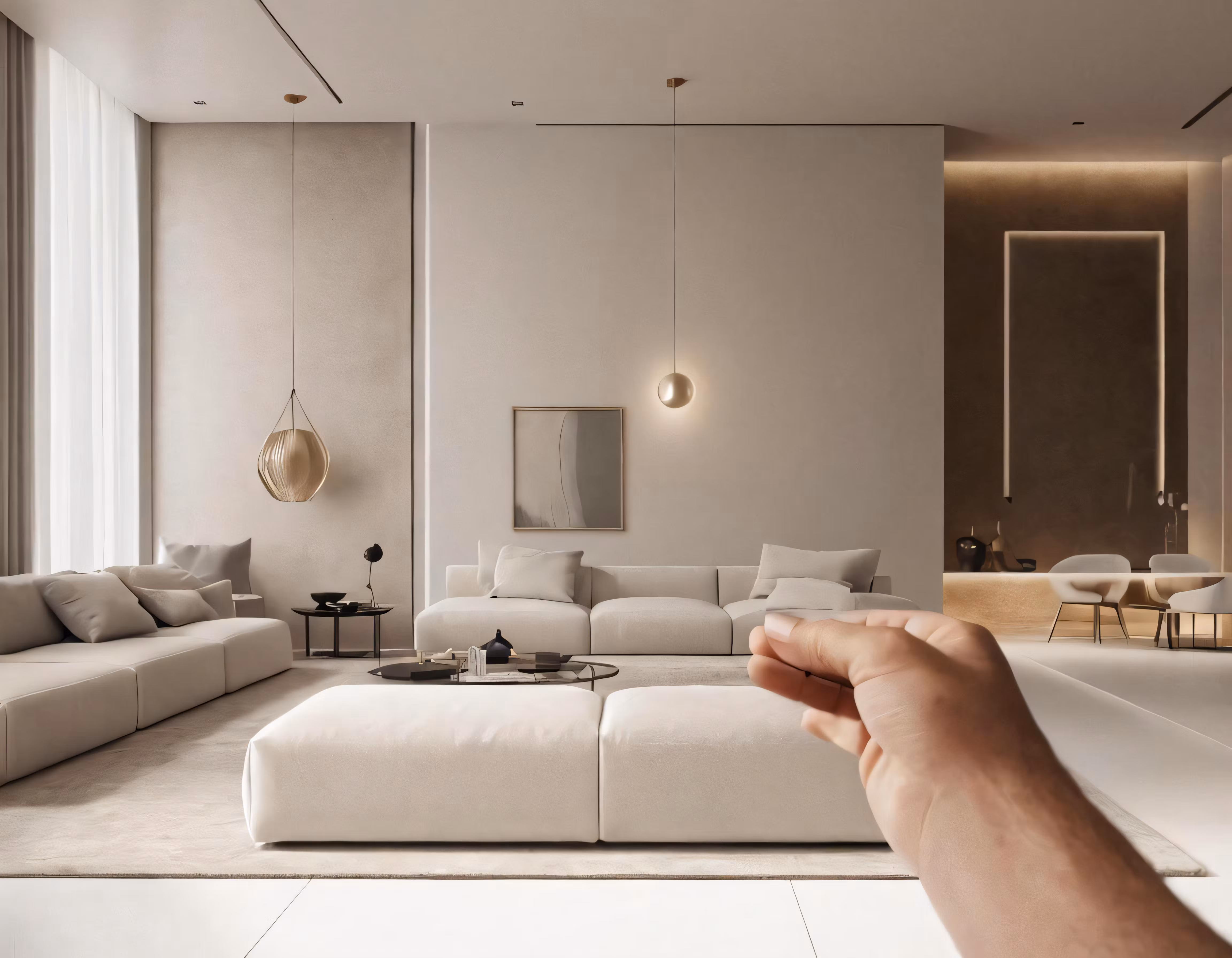 High resolution picture, free to use, this living room has a white sofa and two large ottomans in it