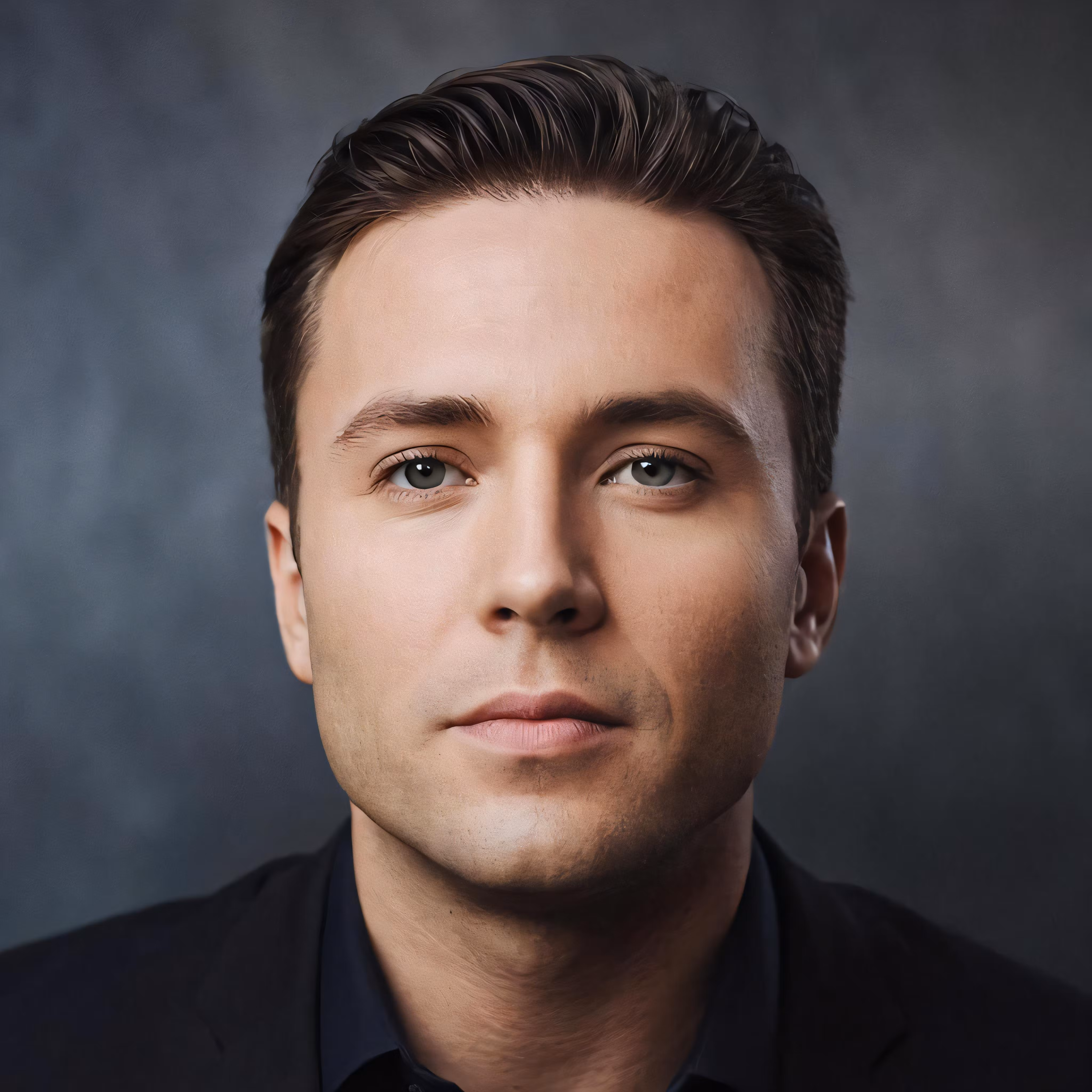 High resolution picture, free to use, this man has brown hair and a black shirt