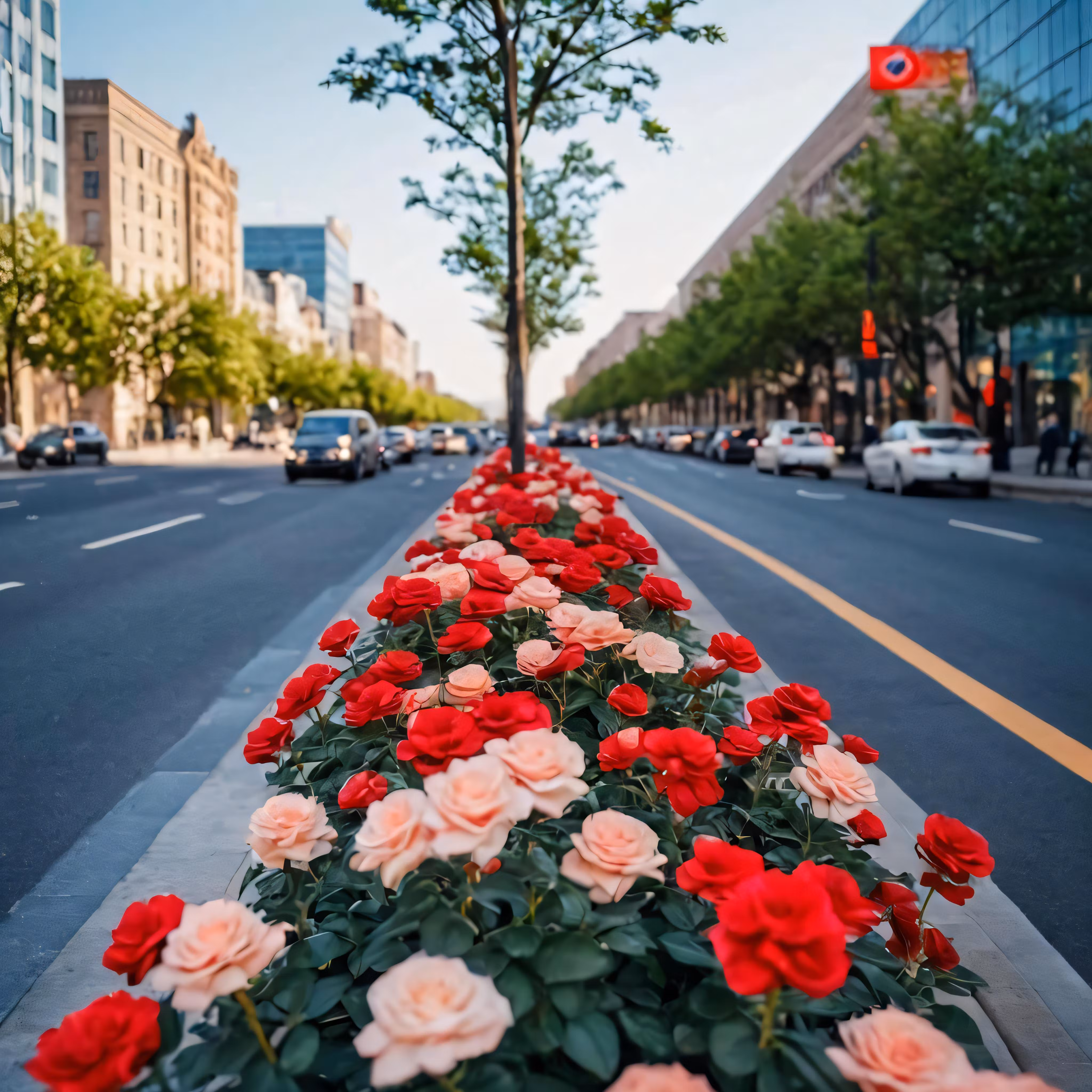 High resolution picture, free to use, this planter has flowers on the side of the road