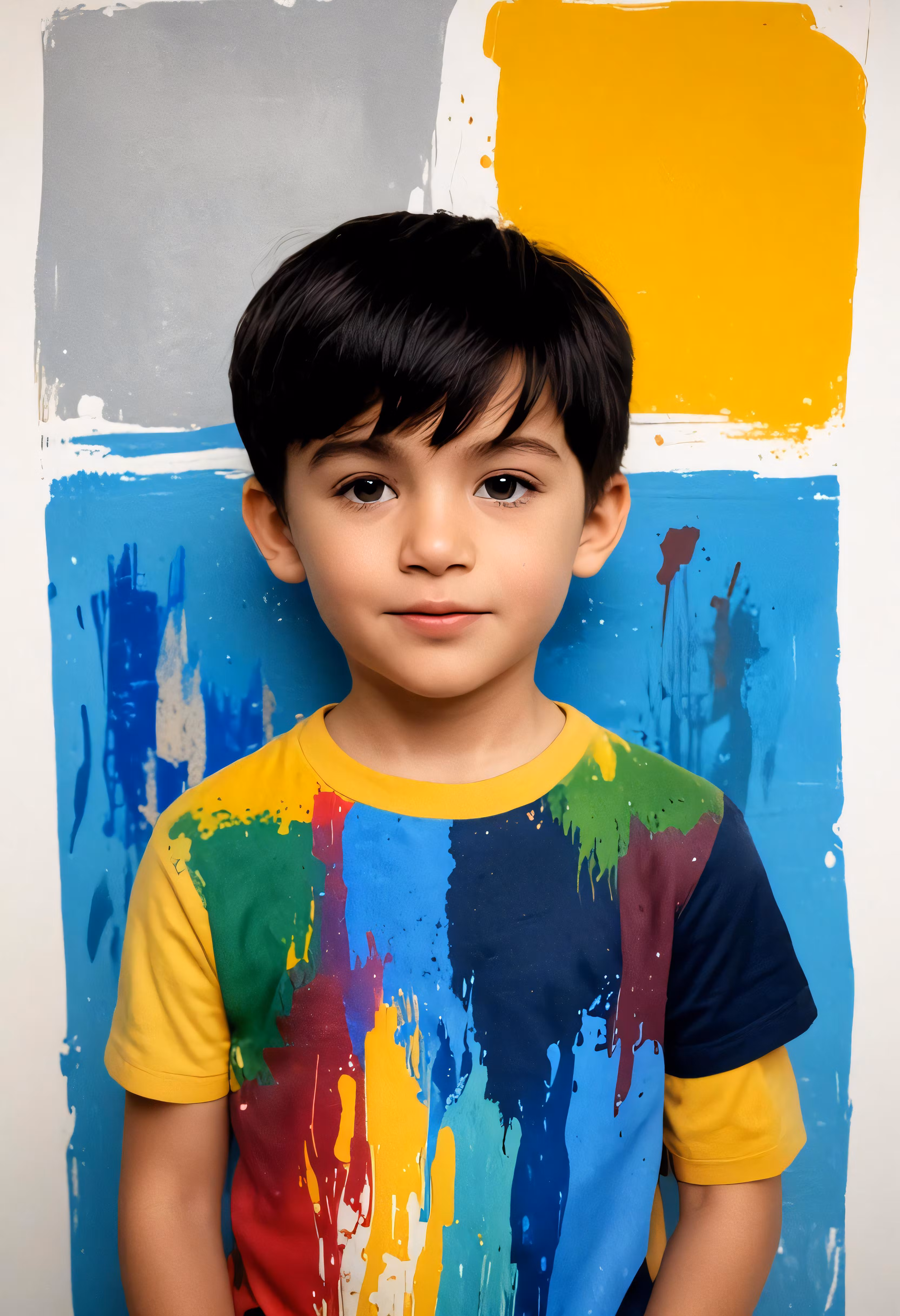 High resolution picture, free to use, this young child has colorful paint on the painting on his face