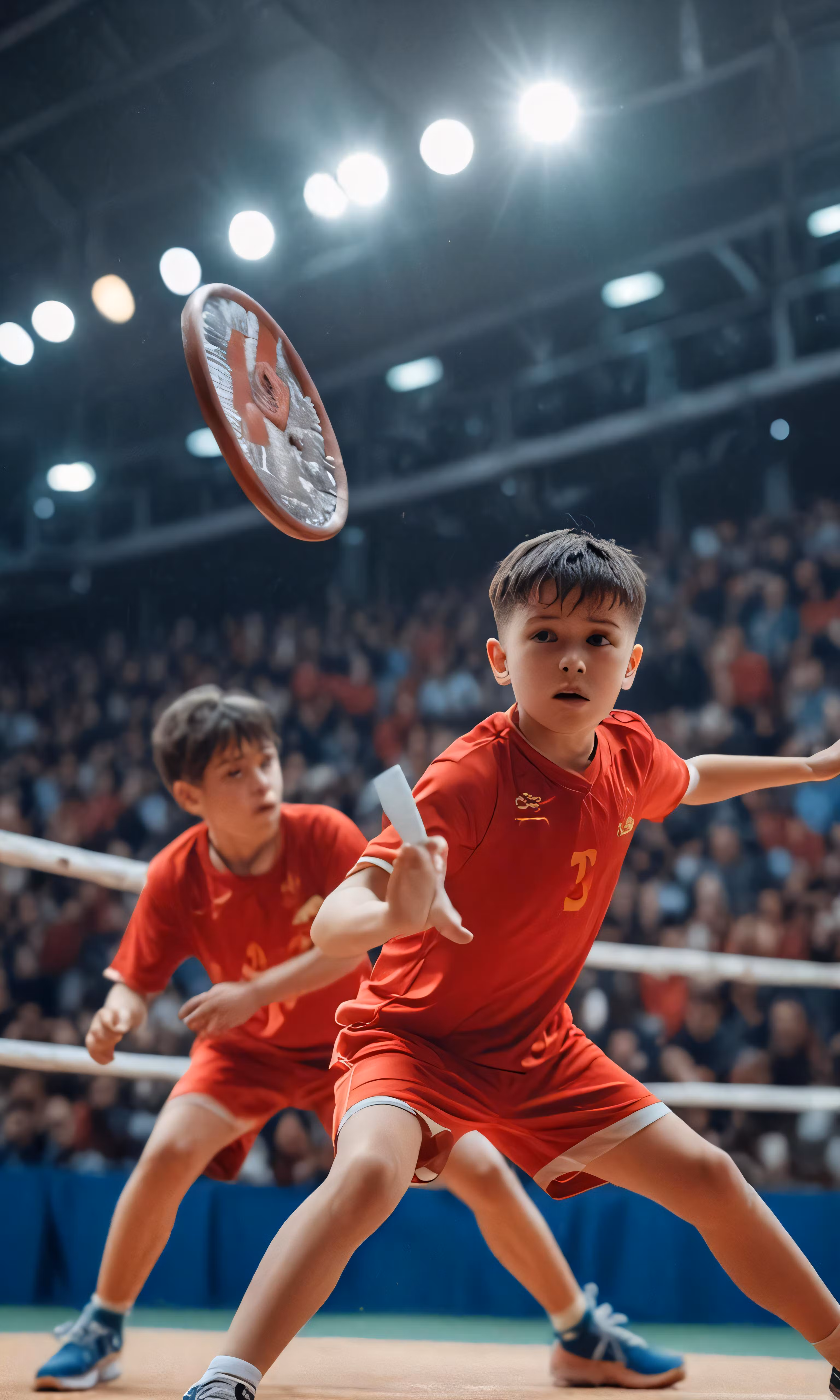 High resolution picture, free to use, three boys playing tennis in a stadium during the day