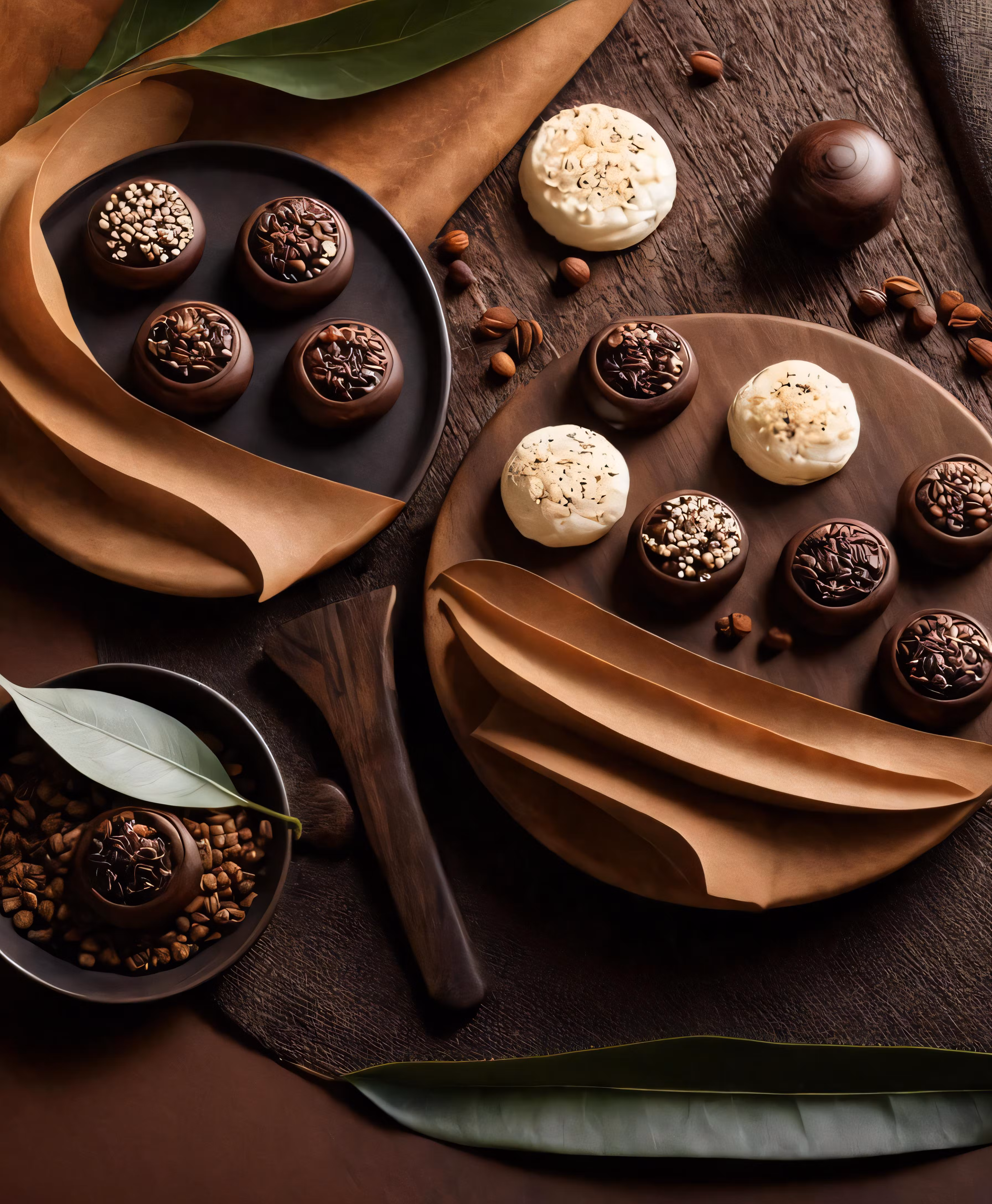High resolution picture, free to use, three chocolates on a plate on a table with other candies