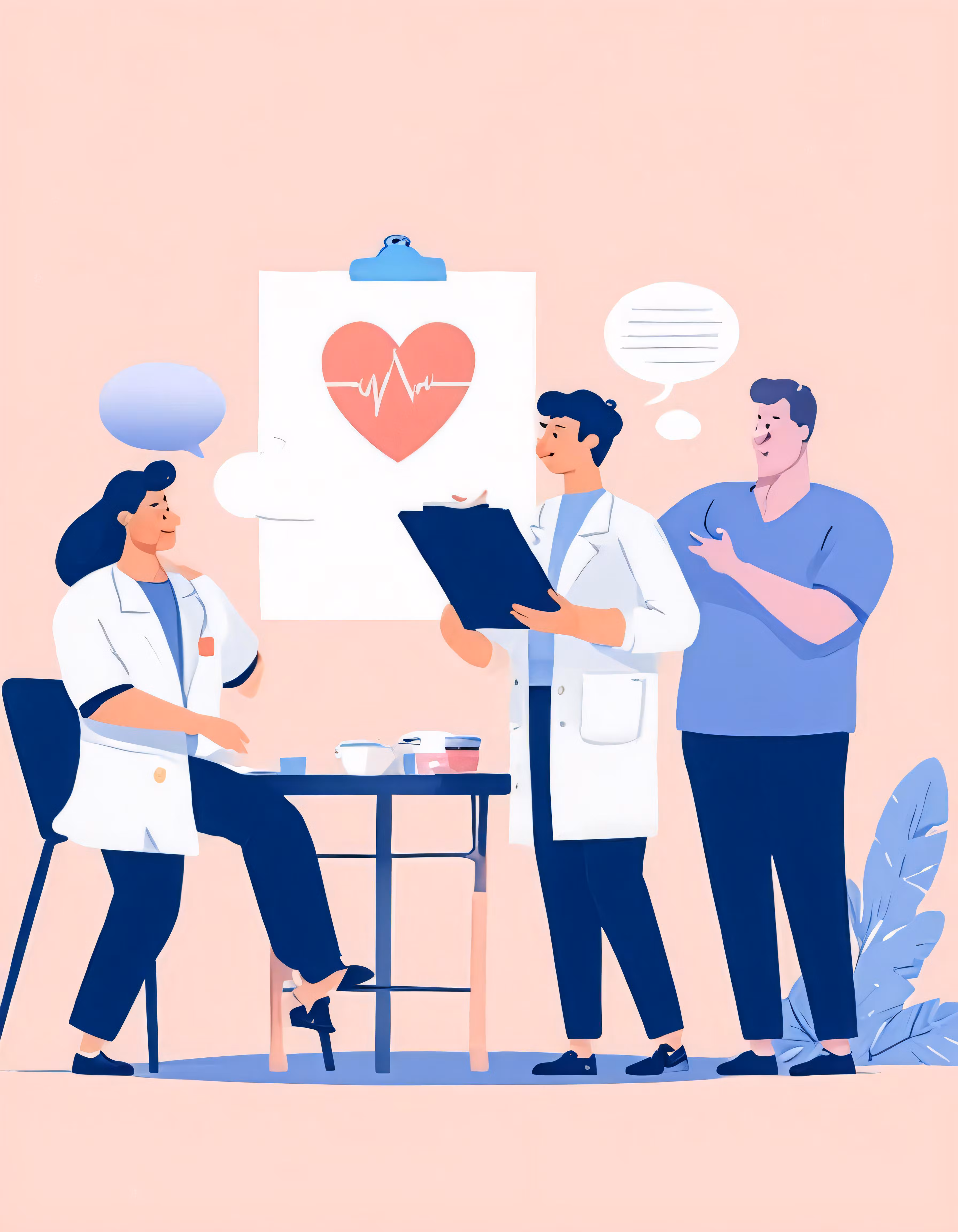 High resolution picture, free to use, three doctors discussing in front of a big poster