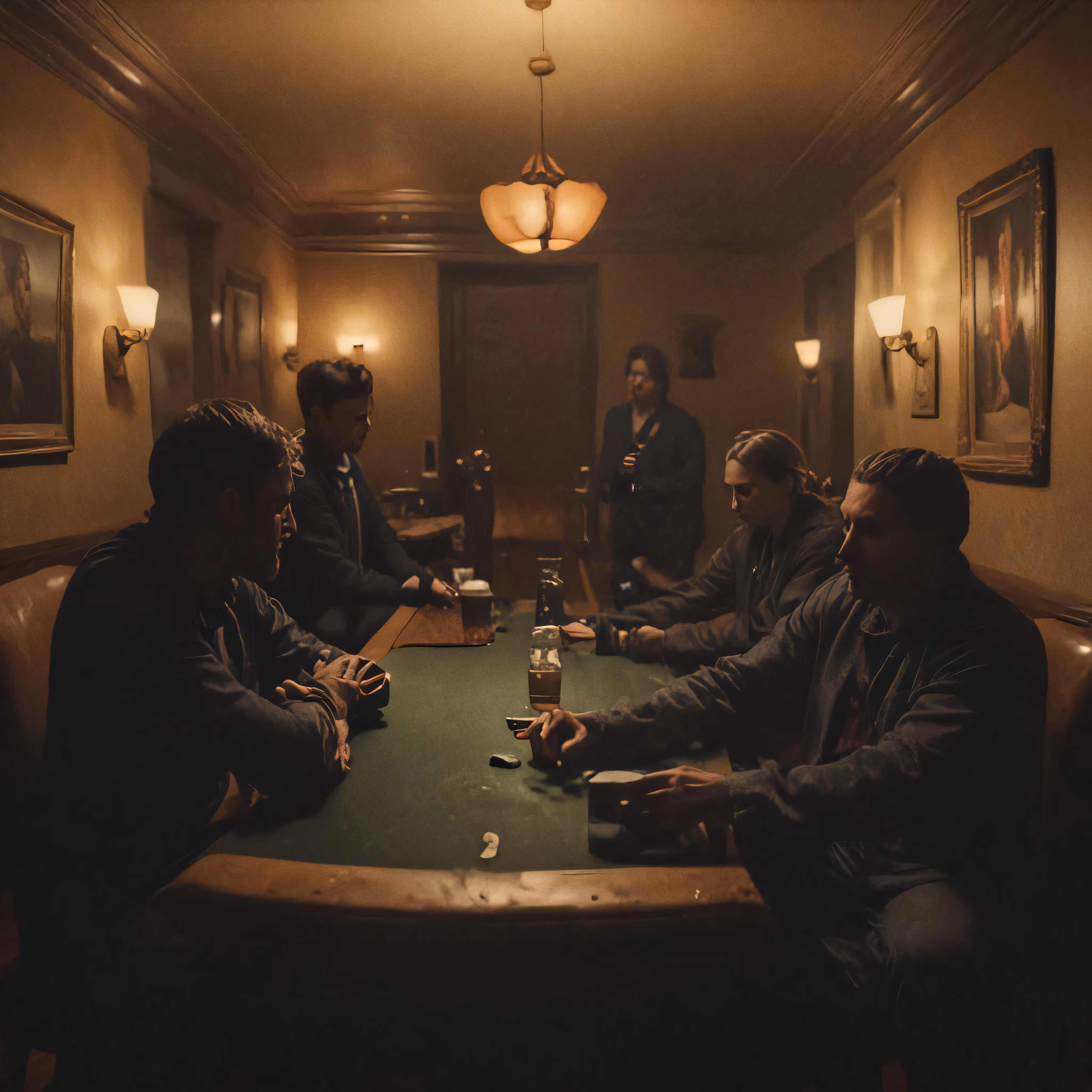 High resolution picture, free to use, three guys sit at a large table in the middle of the room