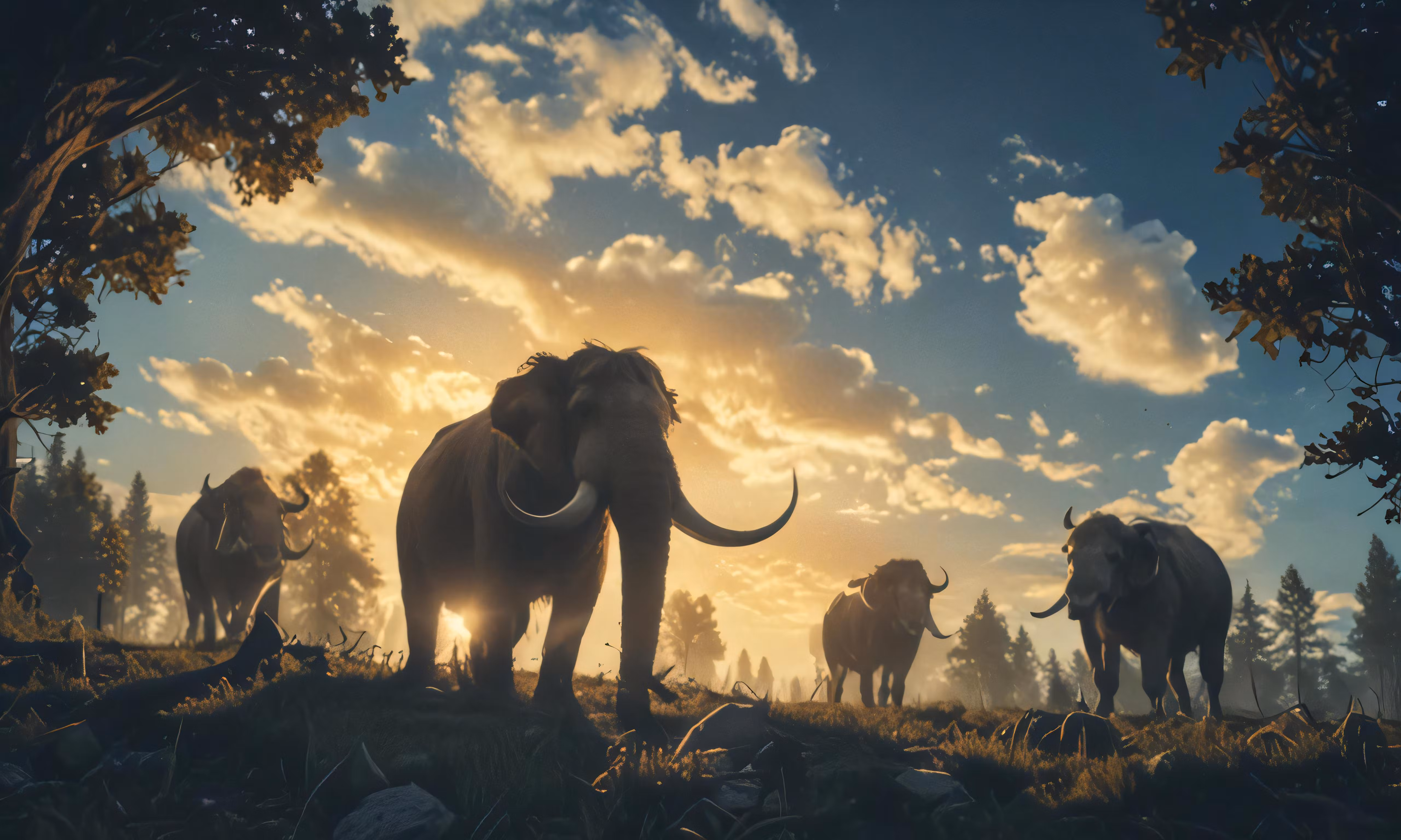 High resolution picture, free to use, three large elephants walking in front of a bright sky