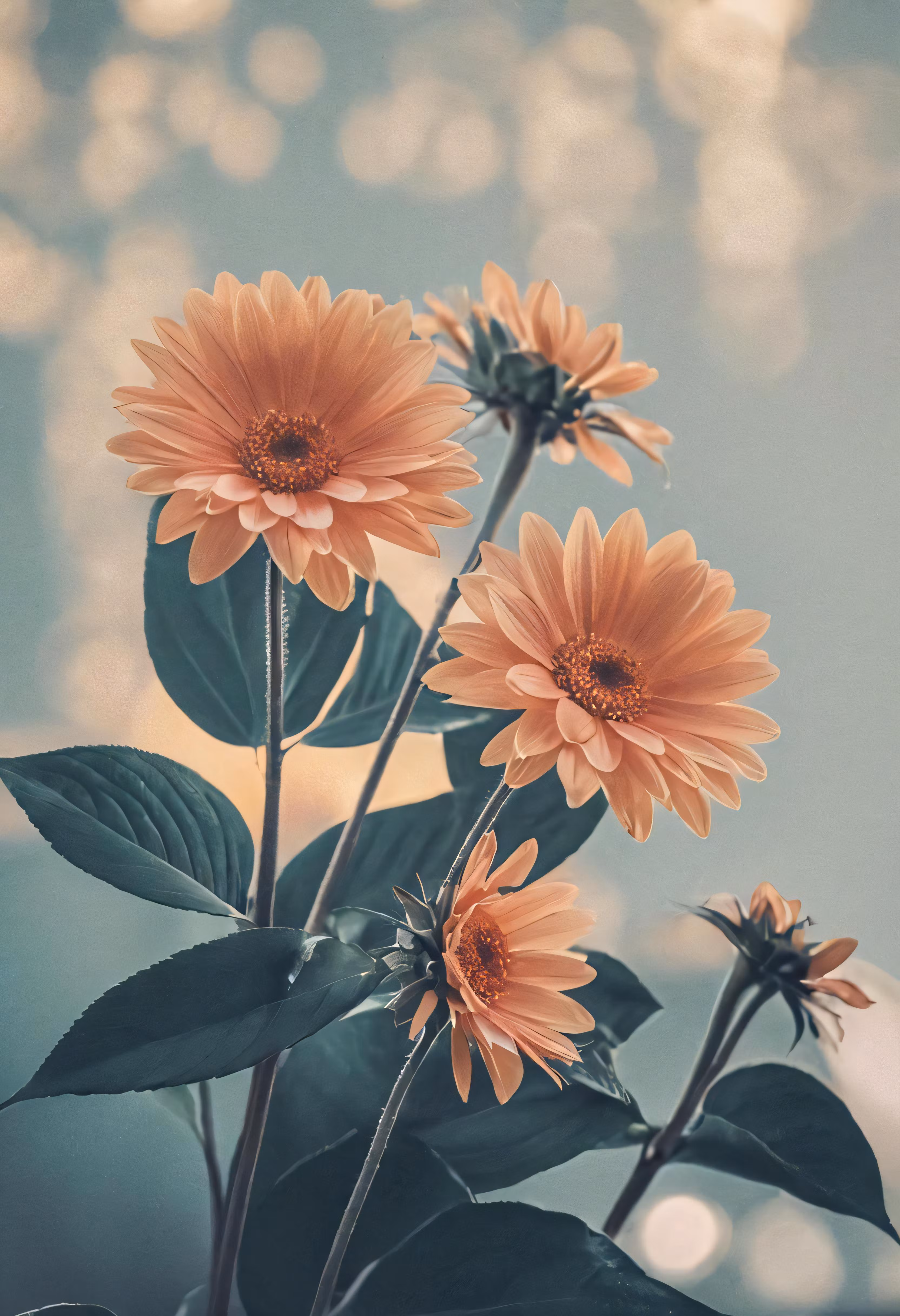 High resolution picture, free to use, three orange flowers in a pot with dark green leaves