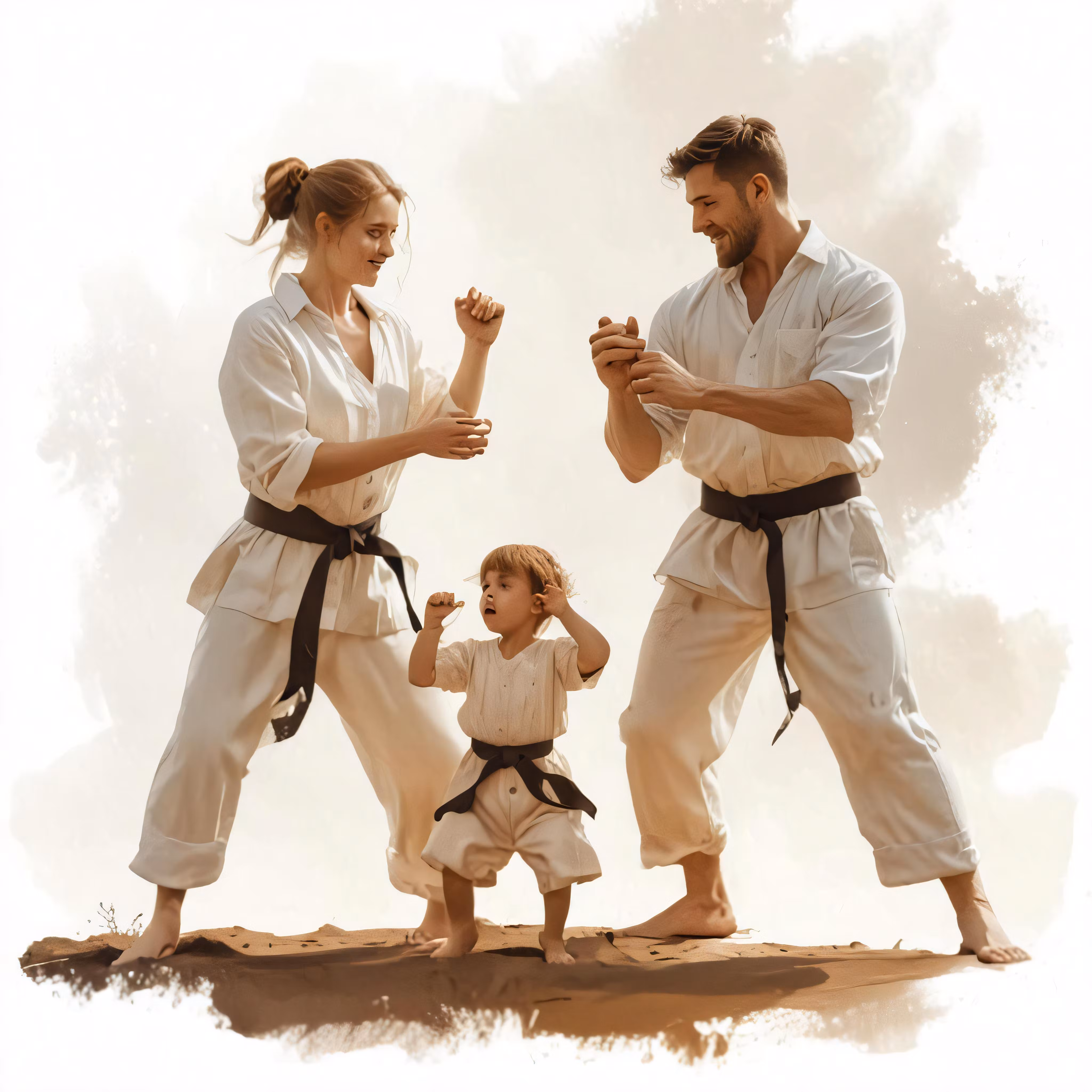 High resolution picture, free to use, three people in karate uniforms practicing karate moves