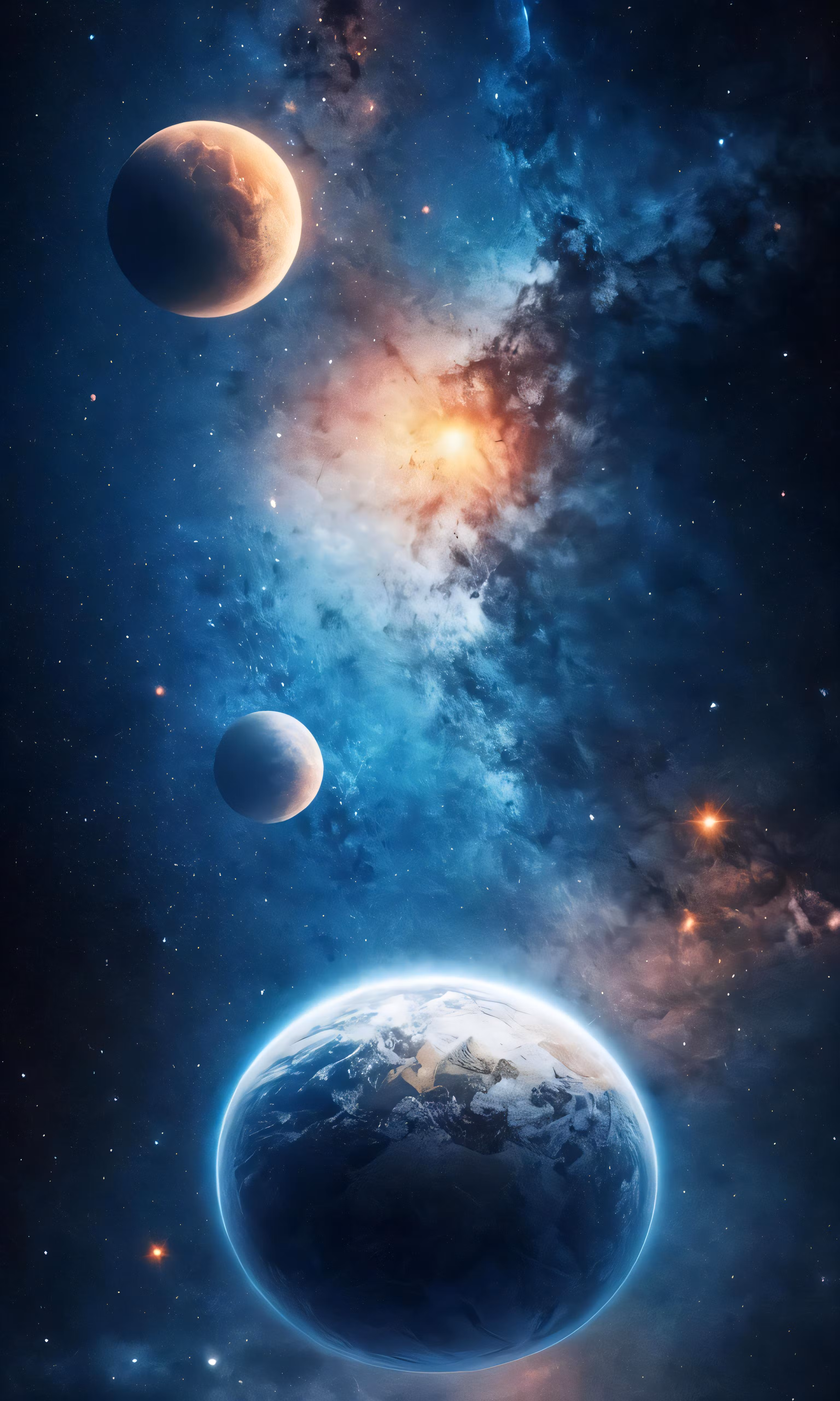 High resolution picture, free to use, three planets, in the sky, and in the foreground are some stars