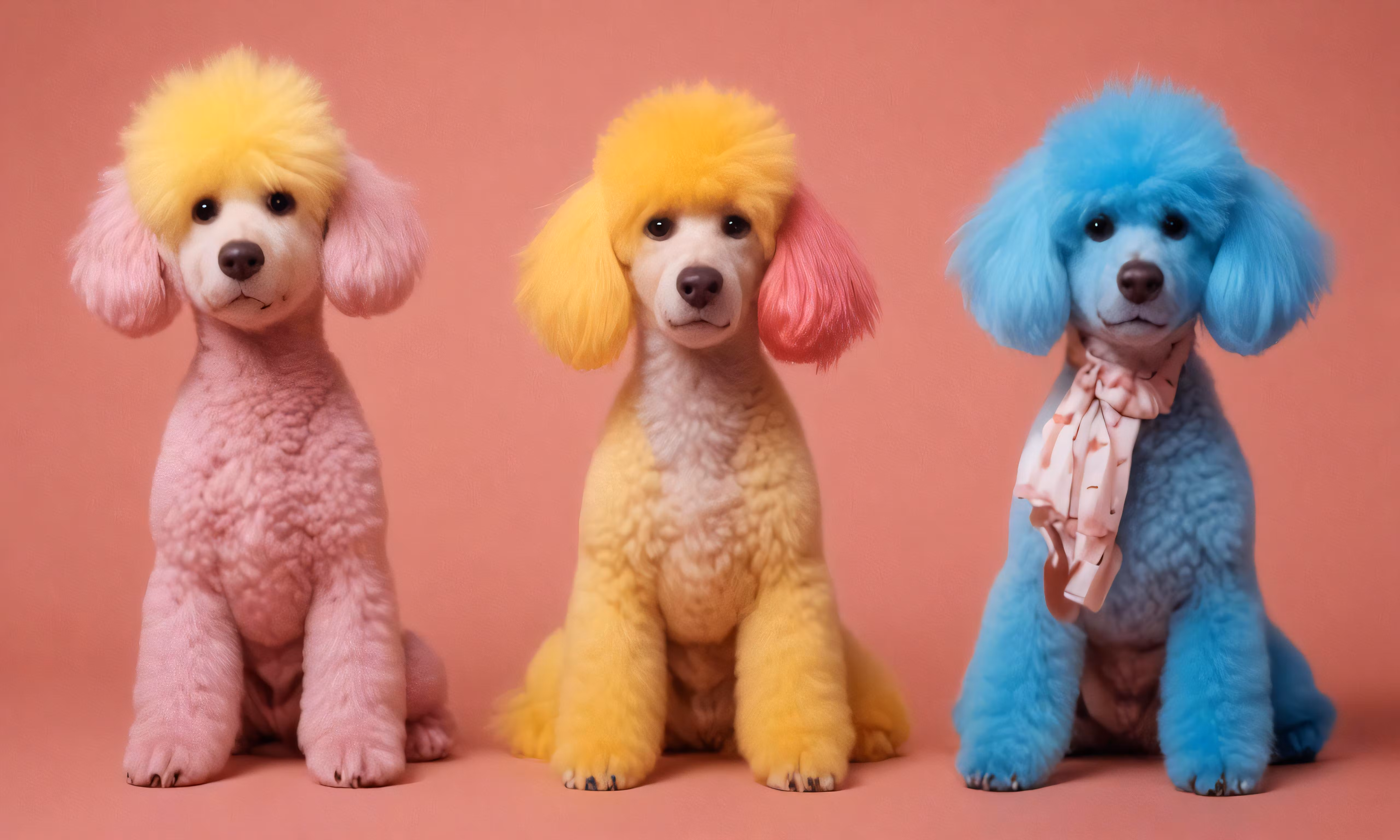 High resolution picture, free to use, three poodles are sitting down in the studio