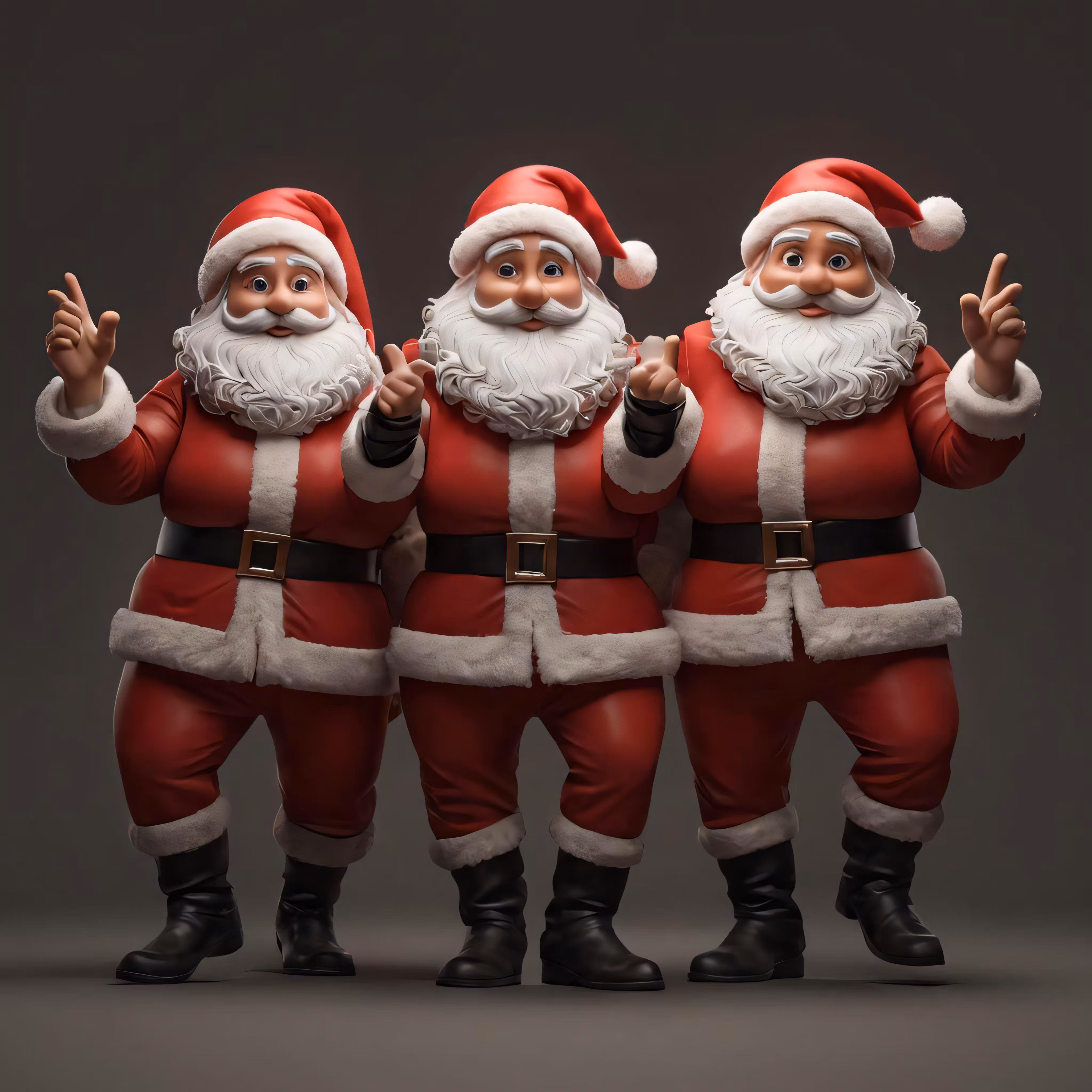 High resolution picture, free to use, three santa clauss with their hands in the air