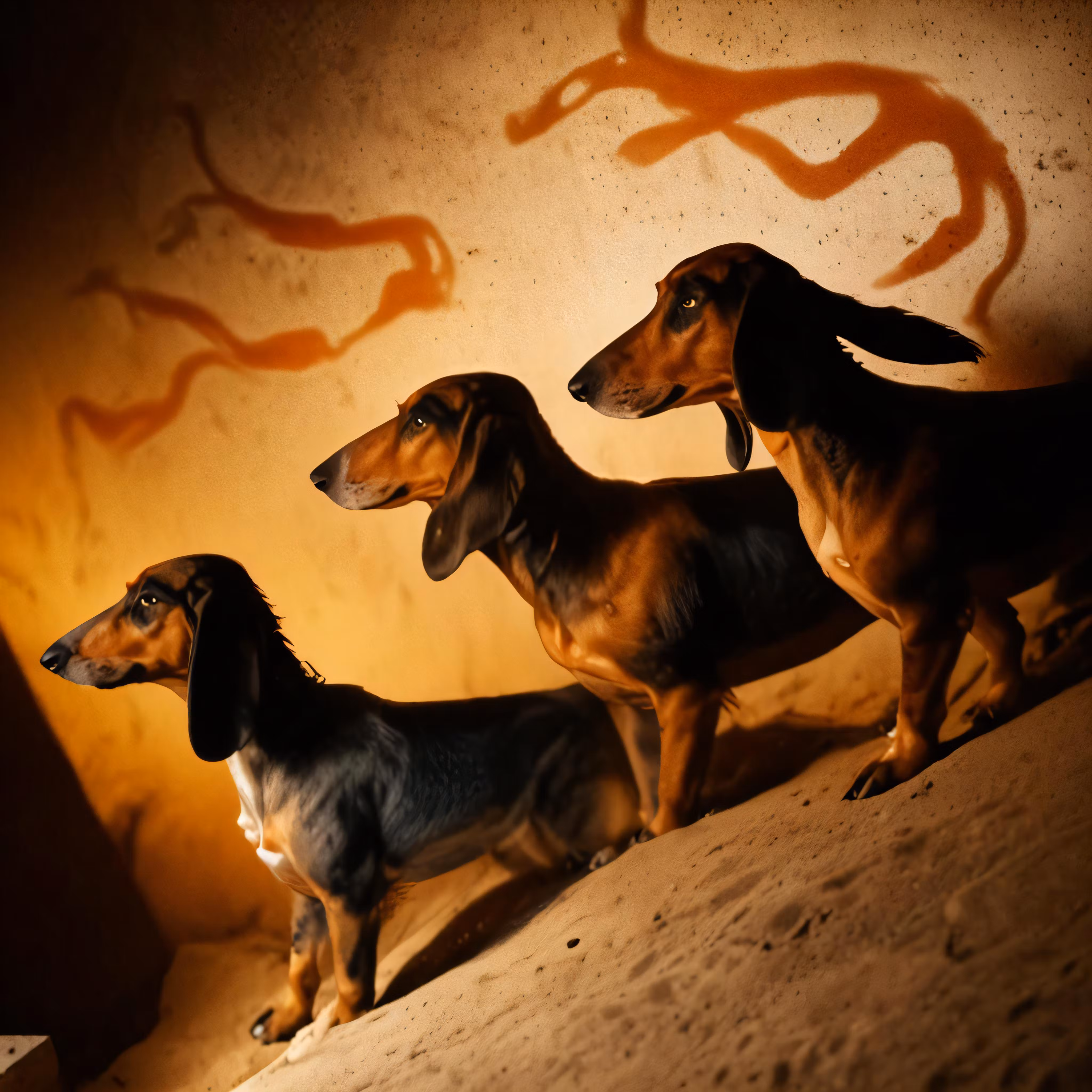 High resolution picture, free to use, three small dachshund dogs posed on a ledge