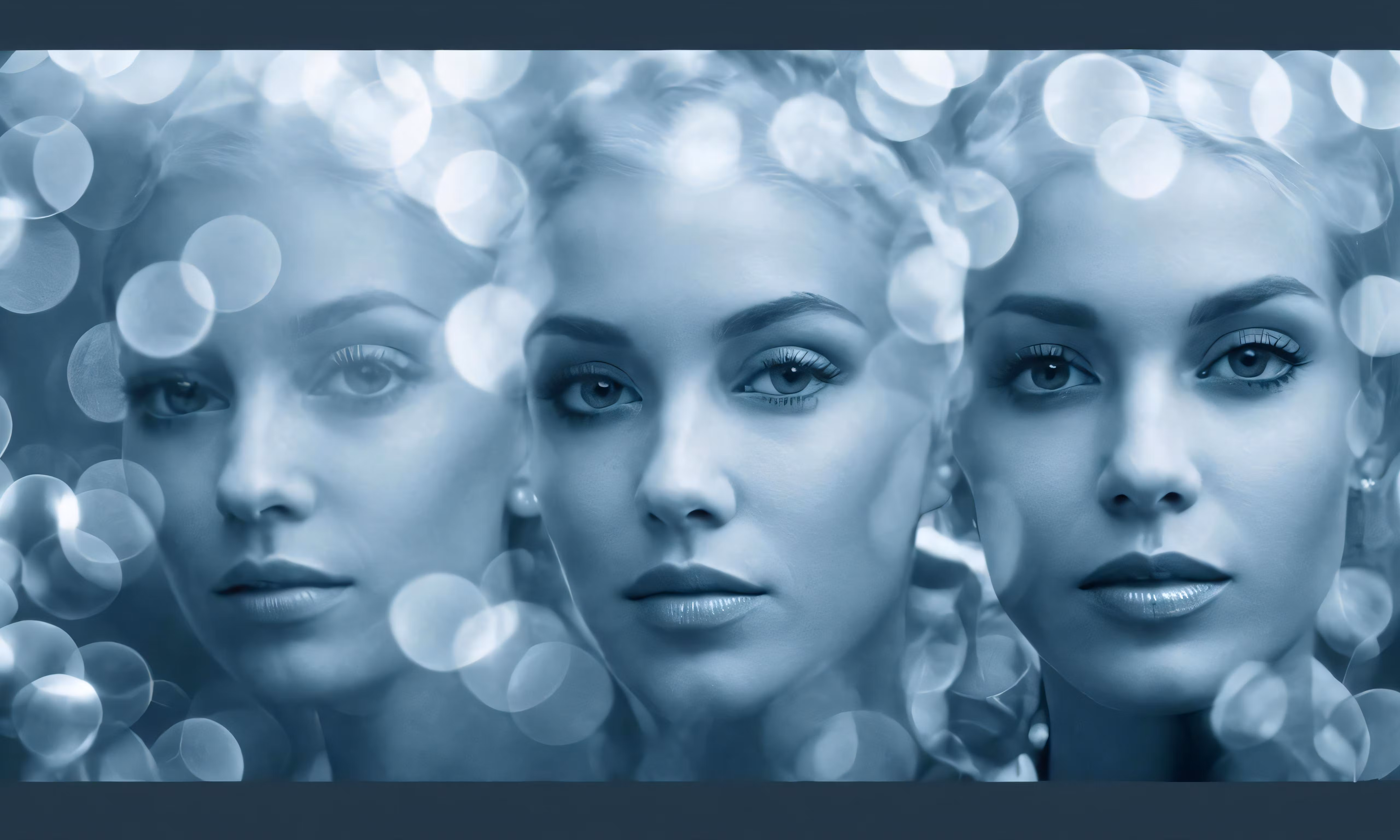 High resolution picture, free to use, three women are seen in this blue photo