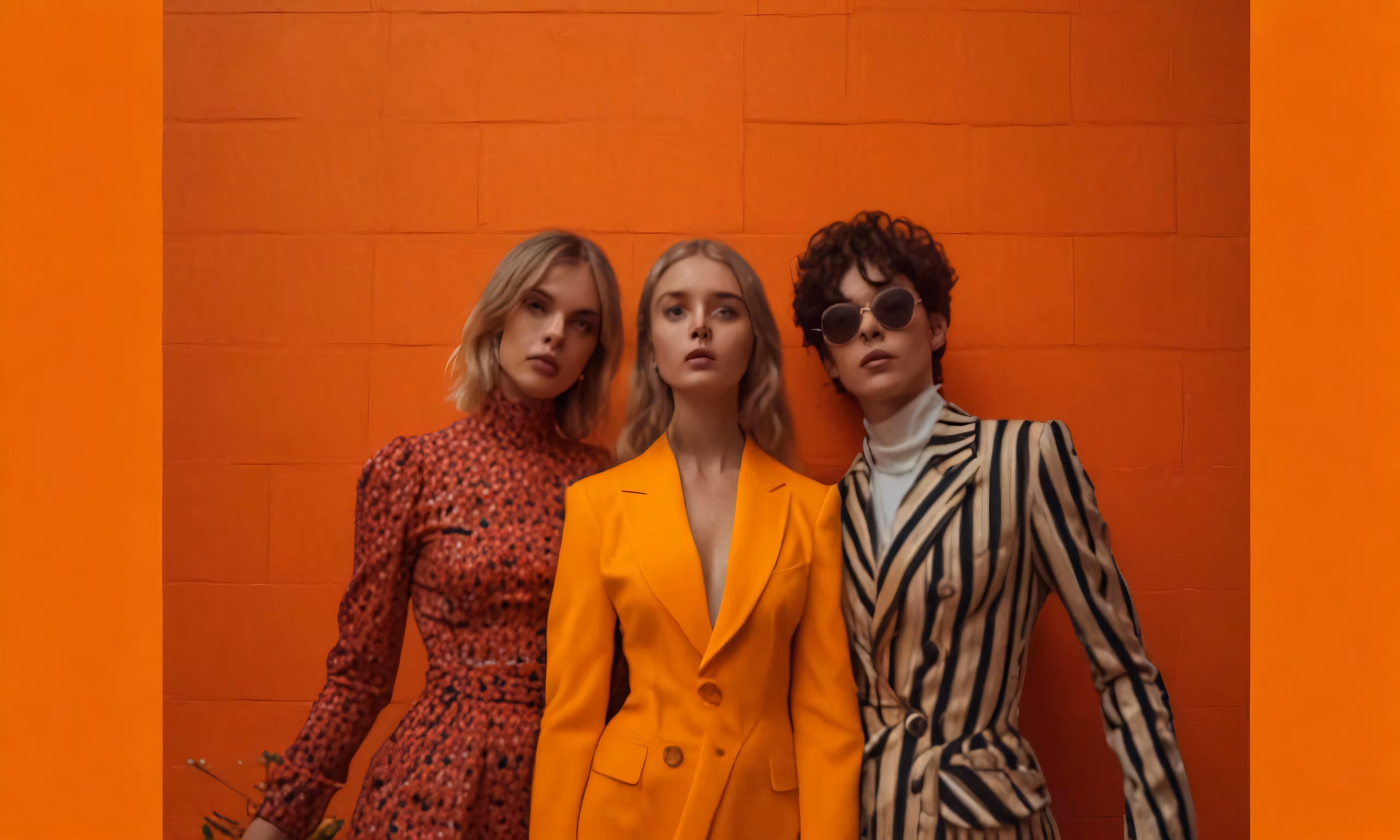 High resolution picture, free to use, three women in jackets standing in front of a wall