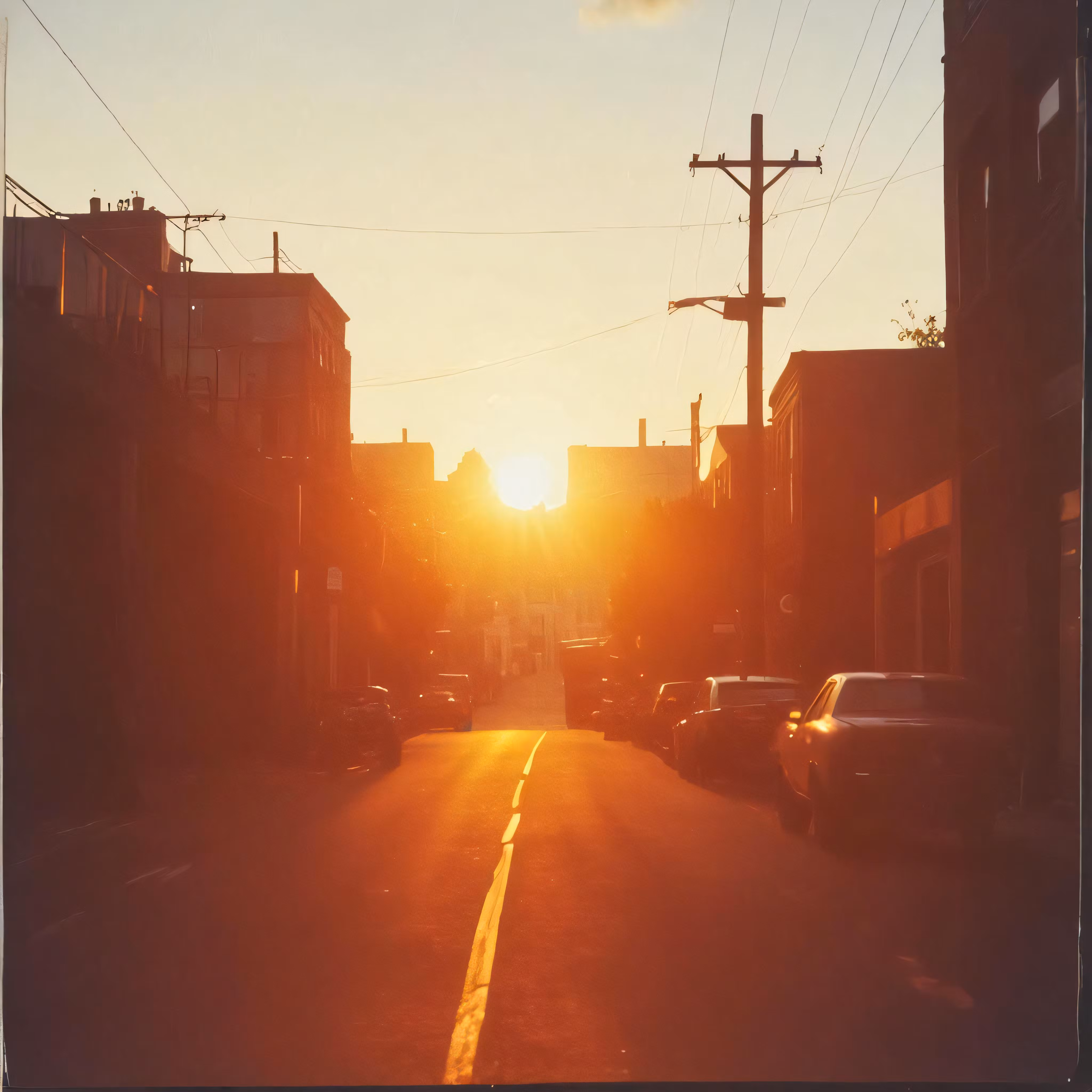 High resolution picture, free to use, traffic is traveling through an empty street at sunset