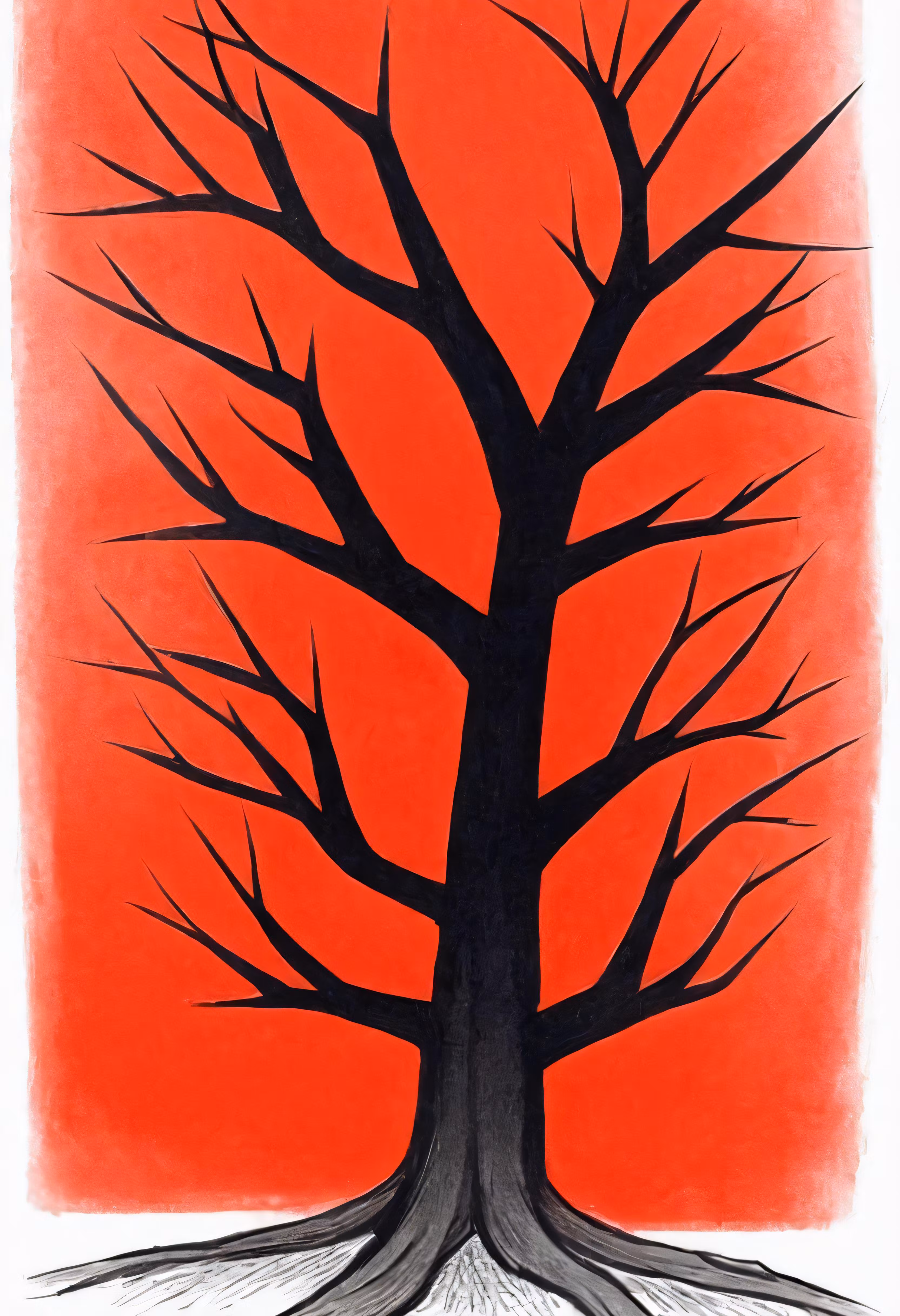 High resolution picture, free to use, tree with no leaves on orange and black background