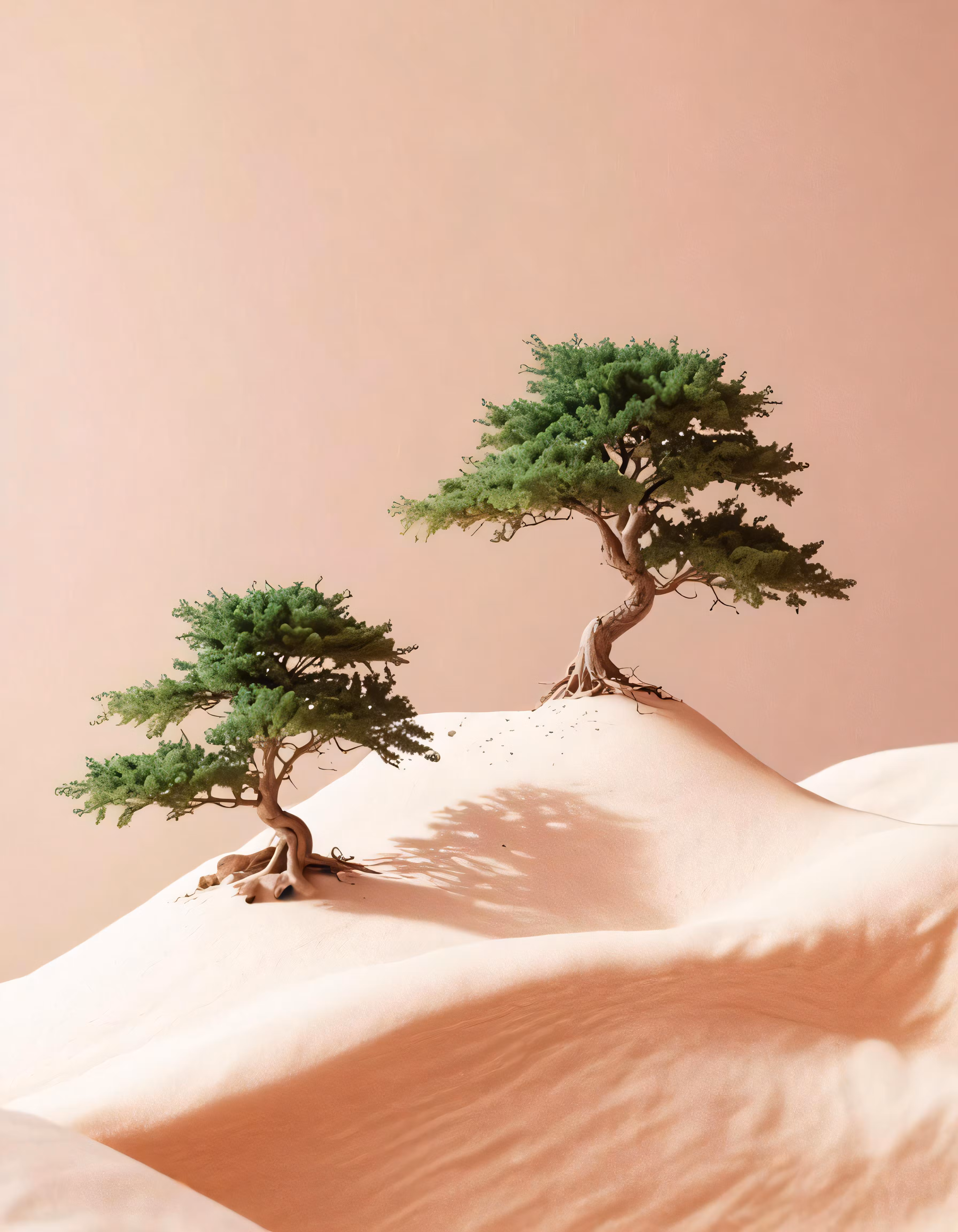 High resolution picture, free to use, trees growing in sand on the beach, painted in light pink