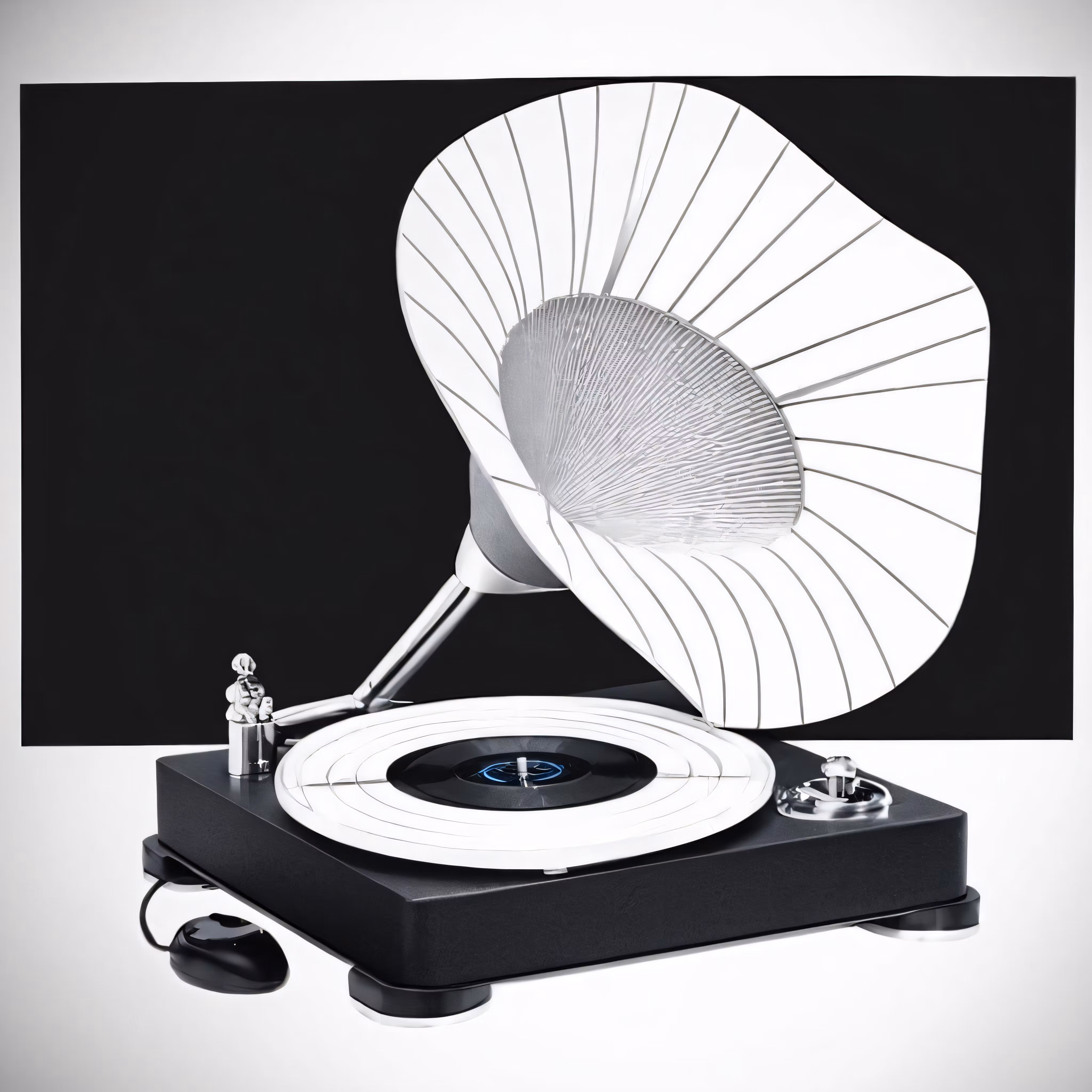 High resolution picture, free to use, turntable with satellite style speakers and record player