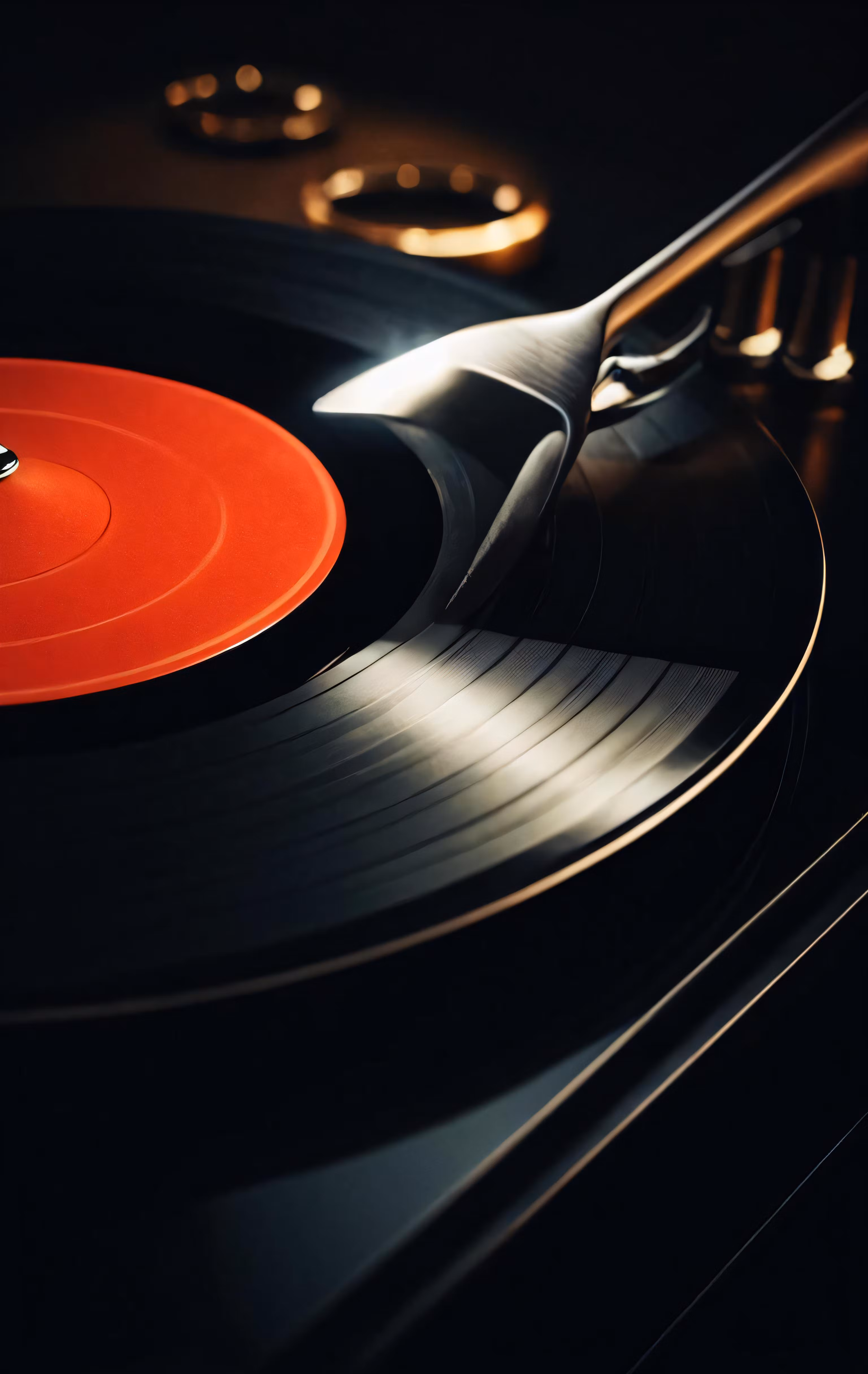 High resolution picture, free to use, turntables with some music on them in the dark