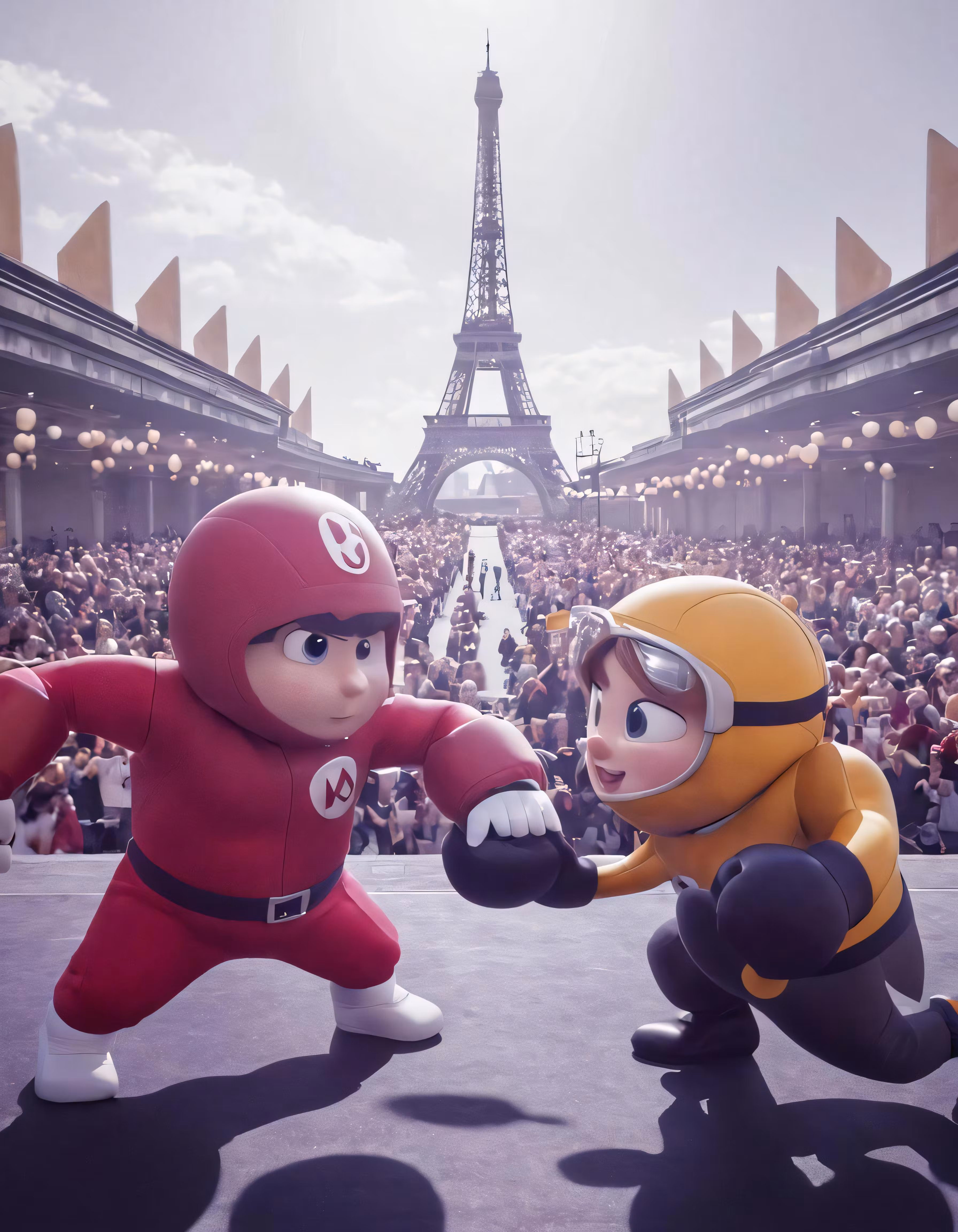 High resolution picture, free to use, two action figures of boxing and the eiffel tower
