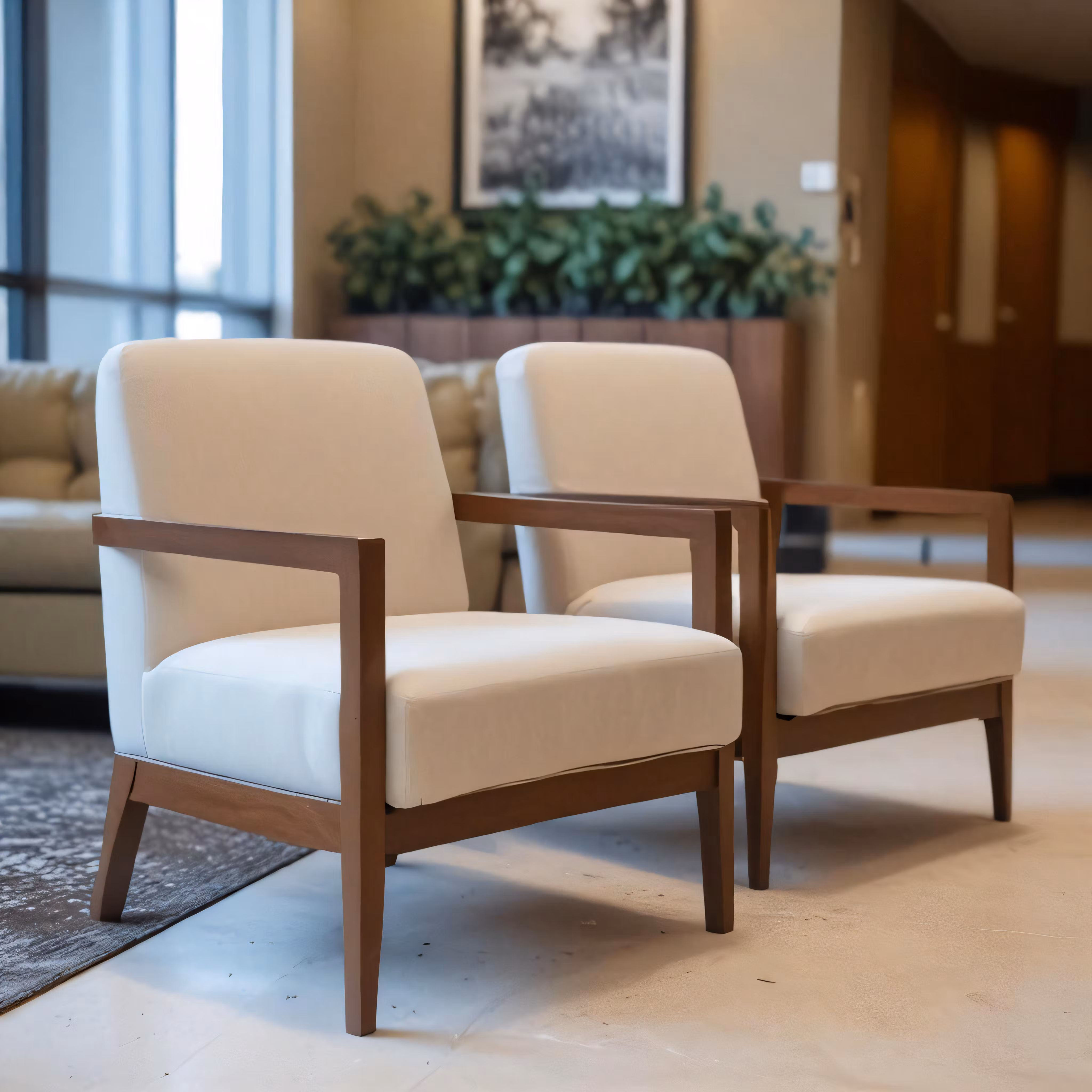 High resolution picture, free to use, two beige upholstered chairs in a waiting area