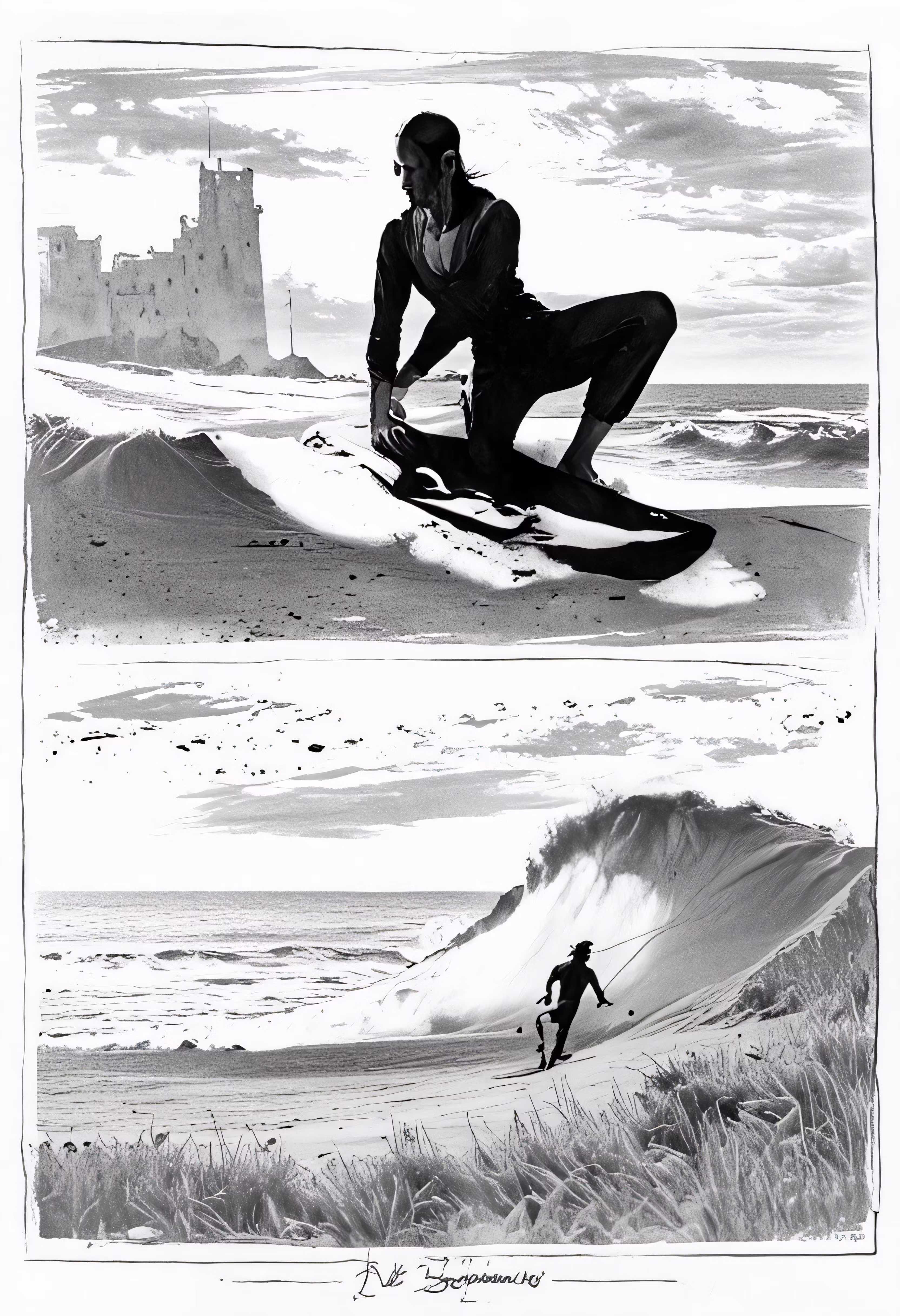 High resolution picture, free to use, two black and white illustrations of a man skiing down the slopes