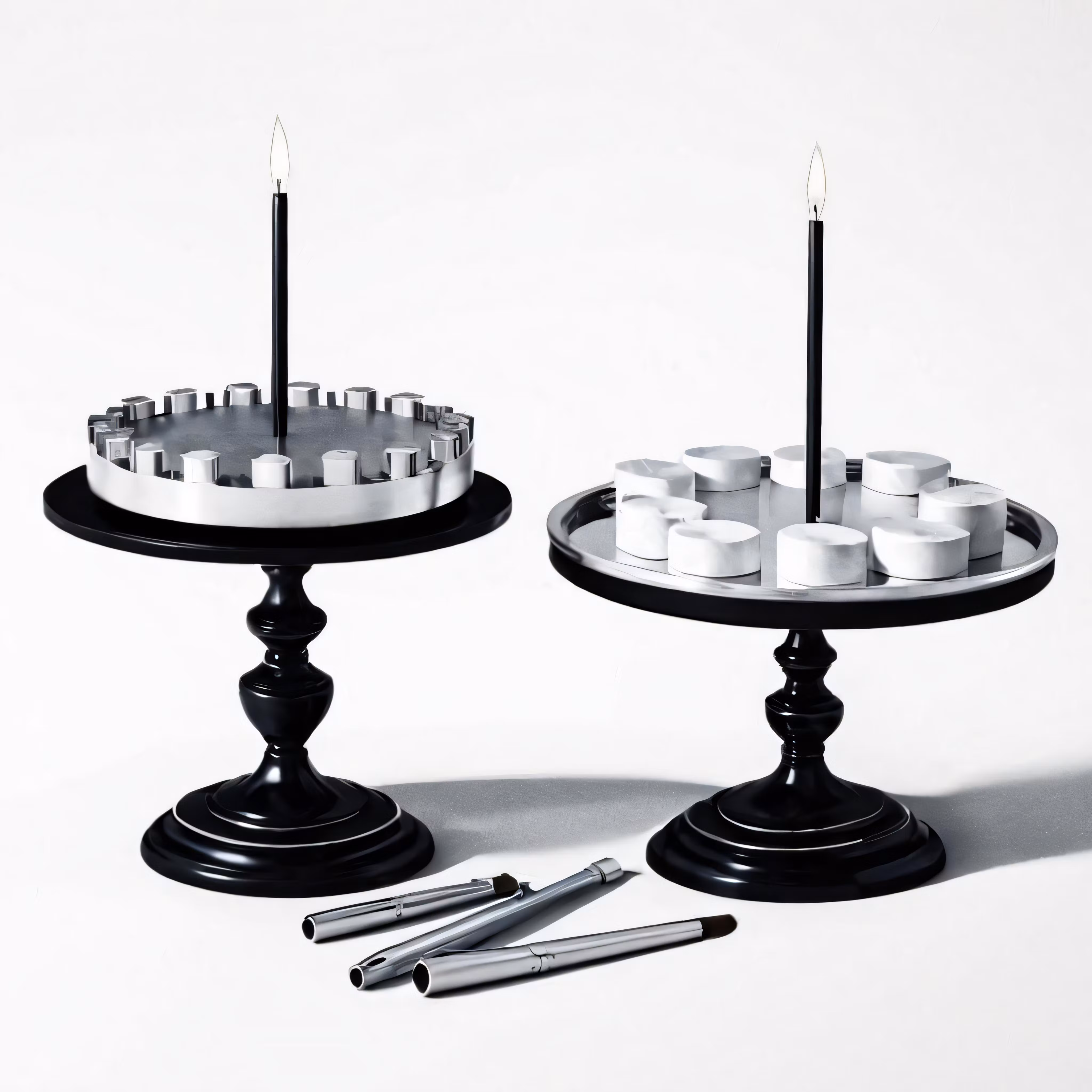 High resolution picture, free to use, two candle stands with candles on each one, one lit up