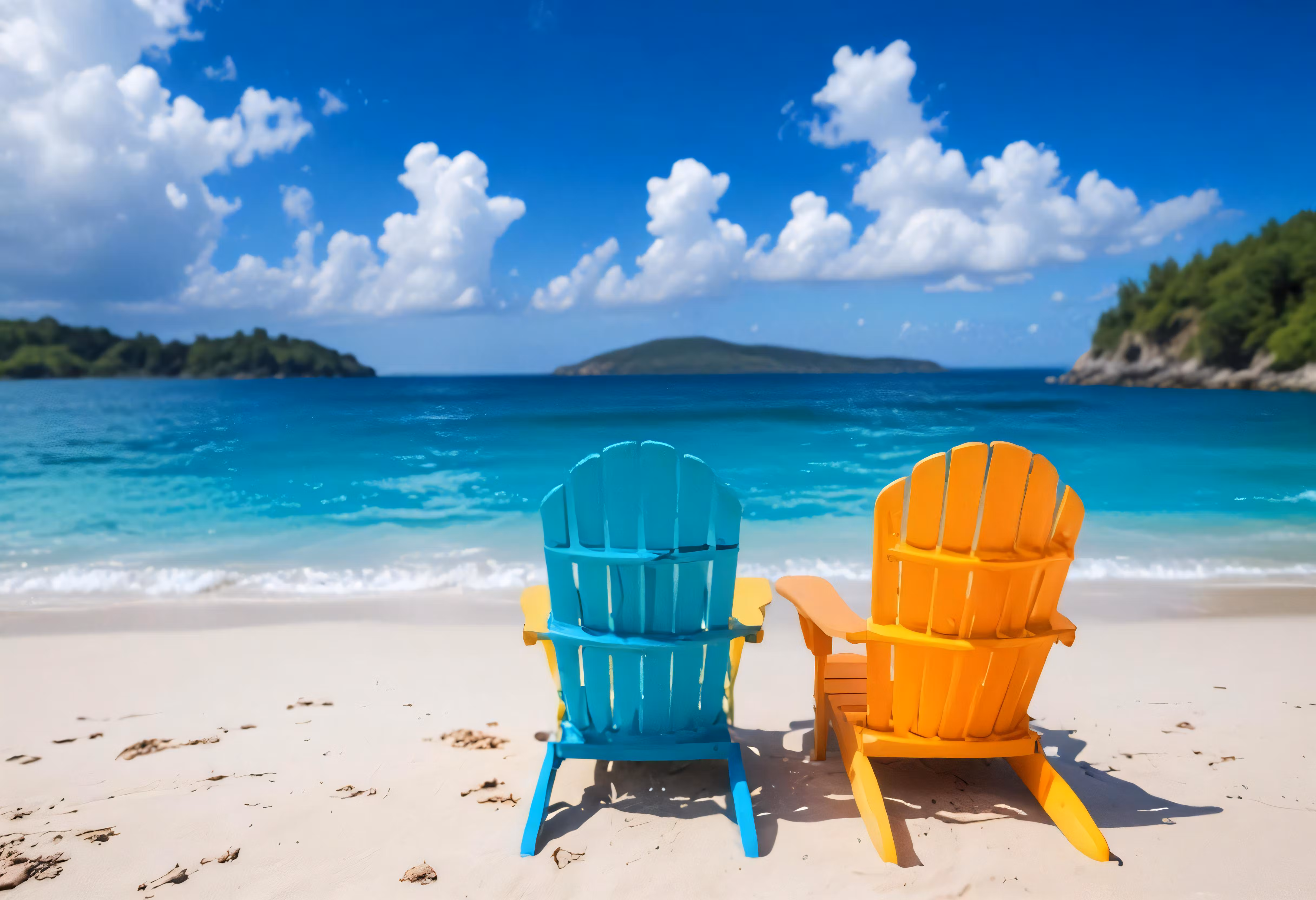 High resolution picture, free to use, two chairs are sitting on a beach looking at the ocean